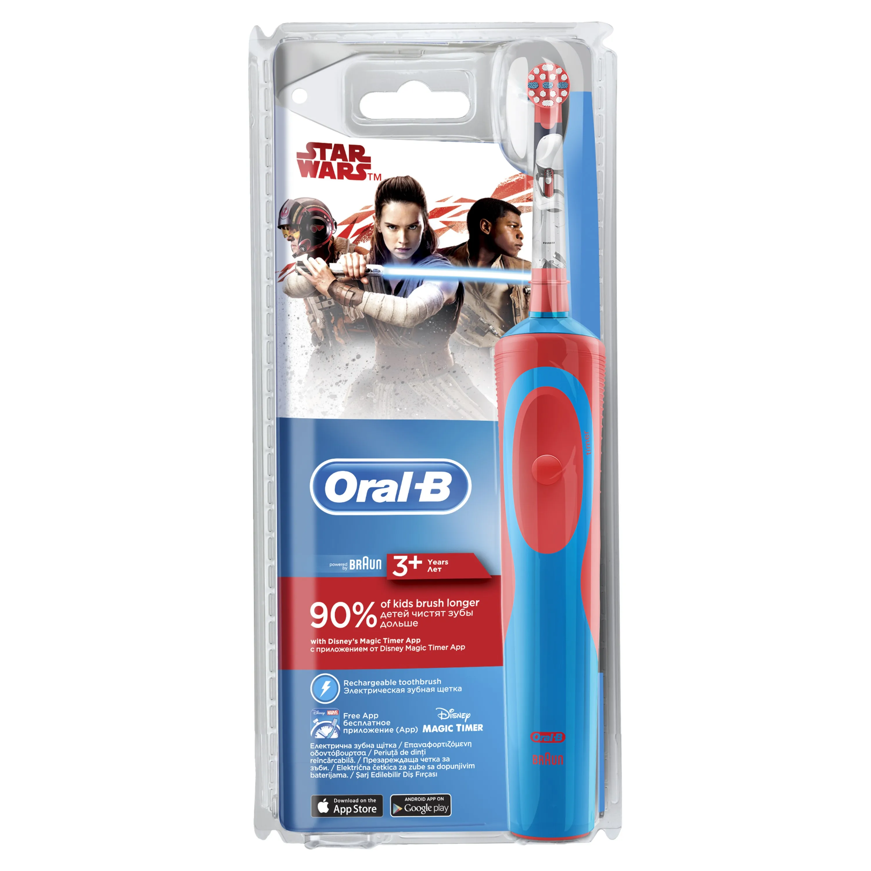 Power Звездные Войны 3+ Детская электрическая зубная щетка Oral-B для мальчиков и девочек, с персонажами Дисней «Звездные войны», для эффективного очищения руками вашего начинающего супергероя. Эта аккумуляторная электрическая зубная щетка с экстрамягкими щетинками разработана специально для детей и совместима с приложением Disney Magiс Timer от Oral-B. Скачайте приложение, чтобы помочь вашим детям чистить зубы в течение 2 минут в соответствии с рекомендациями стоматологов и выработать правильные привычки гигиены полости рта на всю жизнь.