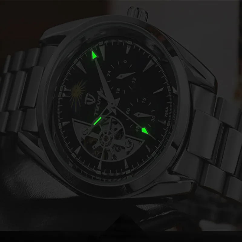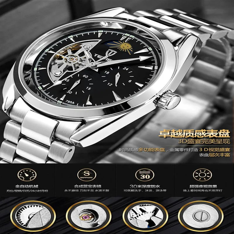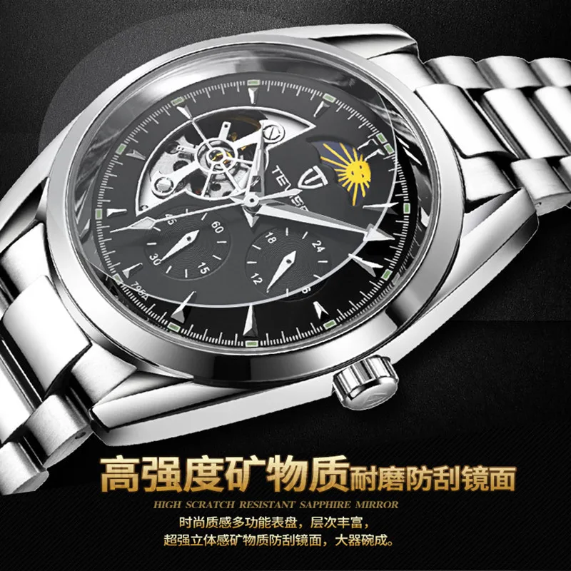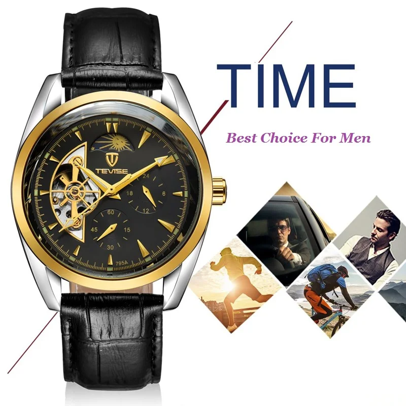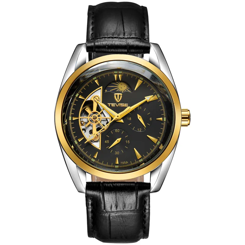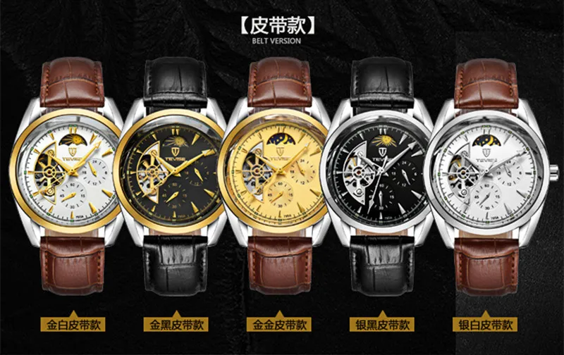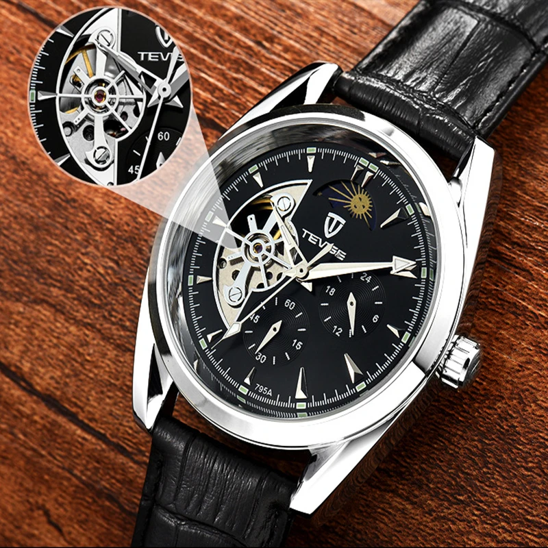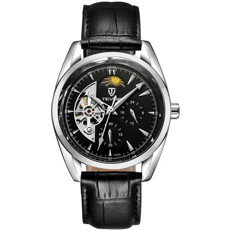 Мужские механические наручные часы с автоподзаводом и кожаным ремешком, 2019
