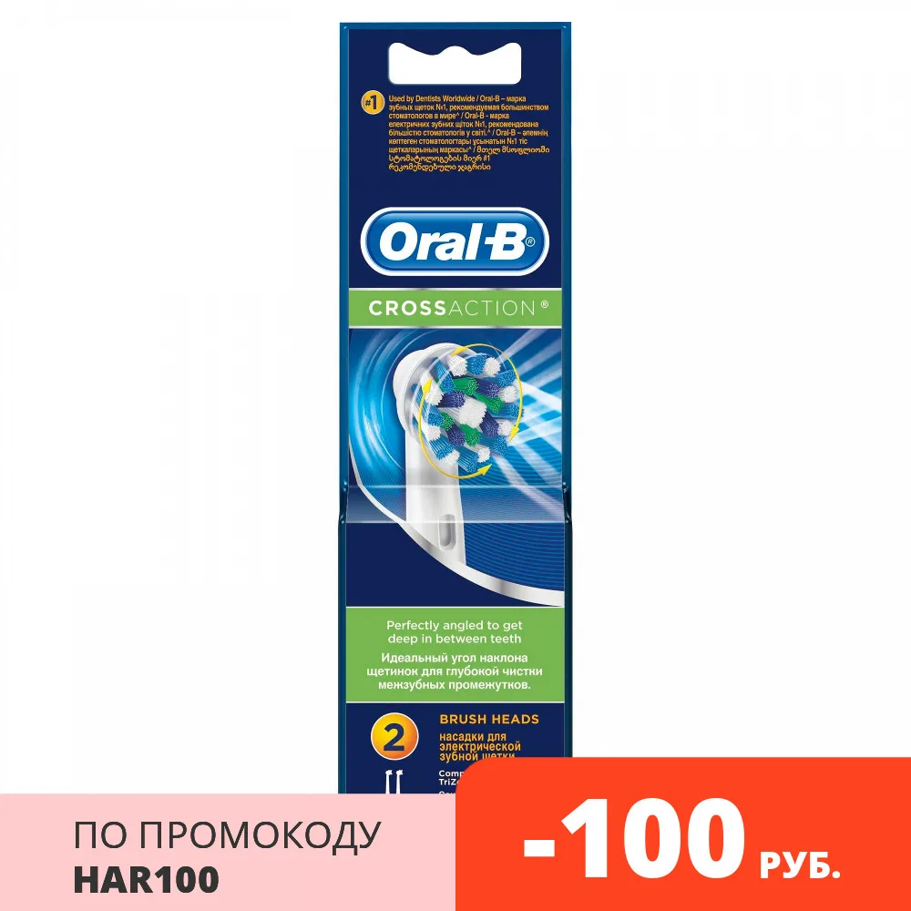 В комплект входят две сменные насадки для электрической зубной щетки Oral-B СrossAсtion.