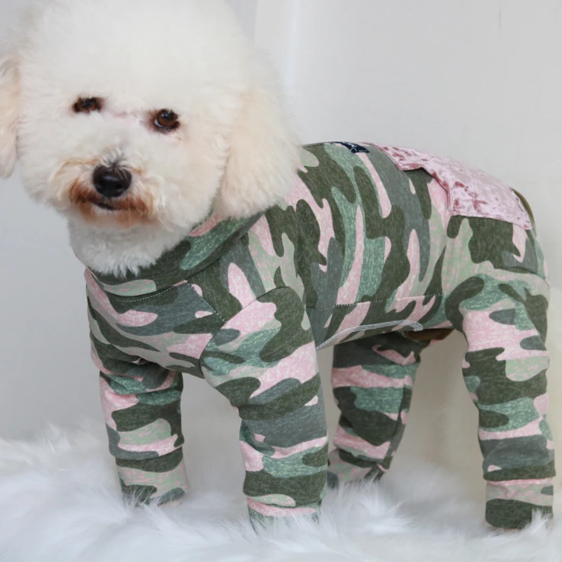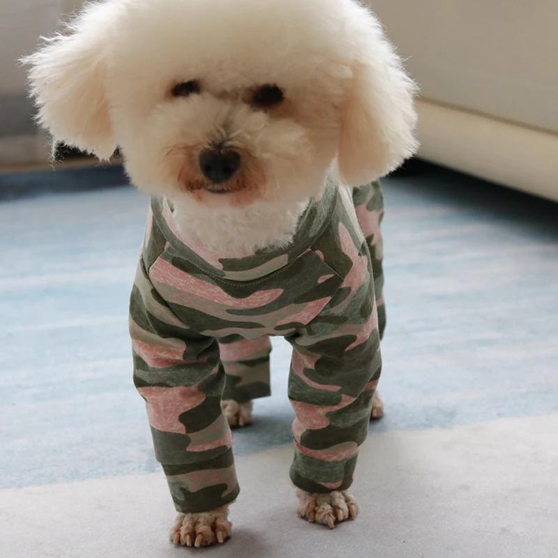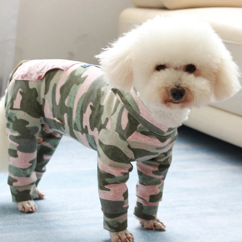 Комбинезон для собаки одежда для щенков защитный живот комбинезон для маленьких собак 100% Хлопковая пижама на молнии с карманами камуфляжная Толстовка Мопса