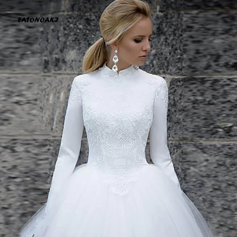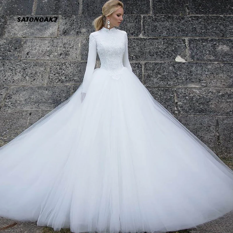 Женское свадебное платье It's yiiya, белое винтажное платье в мусульманском стиле с длинными рукавами и кружевной аппликацией на лето 2022