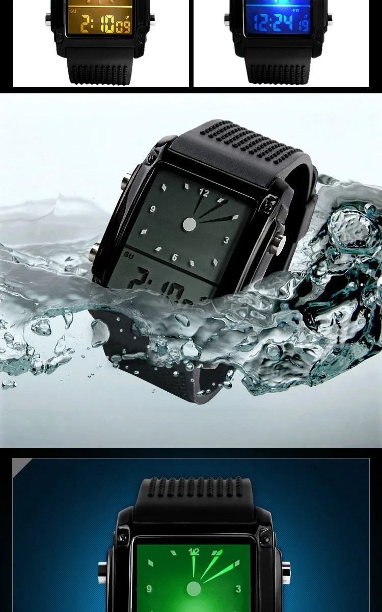 Новые мужские часы, светодиодные цифровые часы, мужские спортивные часы с двойным циферблатом, аналоговые цифровые часы со светодиодной подсветкой, светящиеся часы
