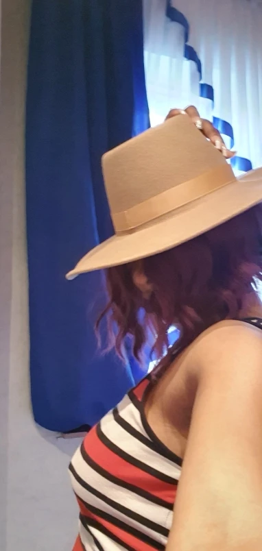 Шляпа понравилась, цвет красивый и приличное качество. Немного помяты поля спереди и сзади шляпы.