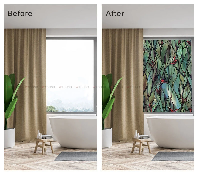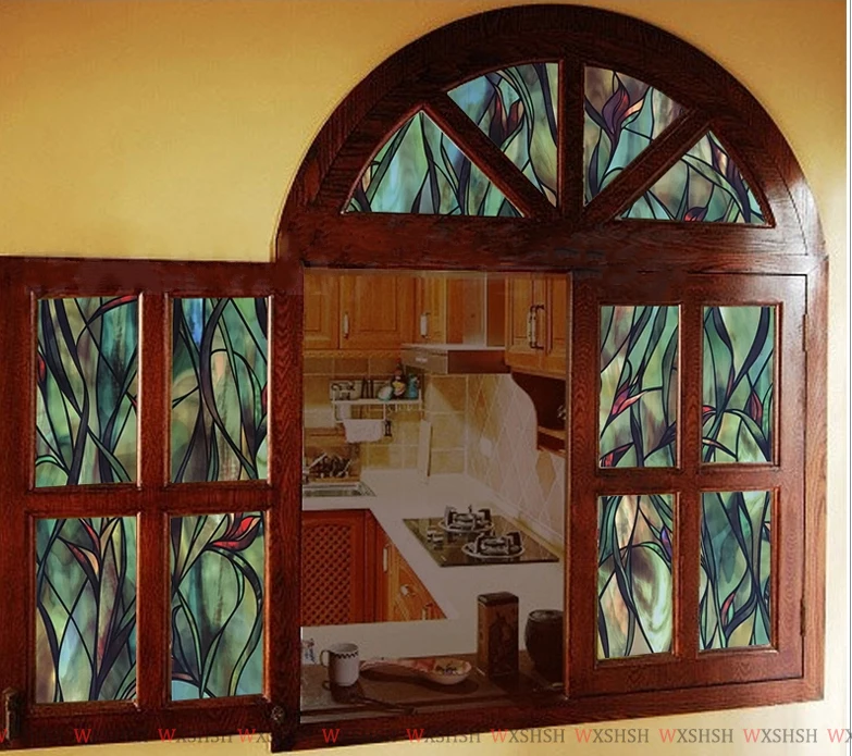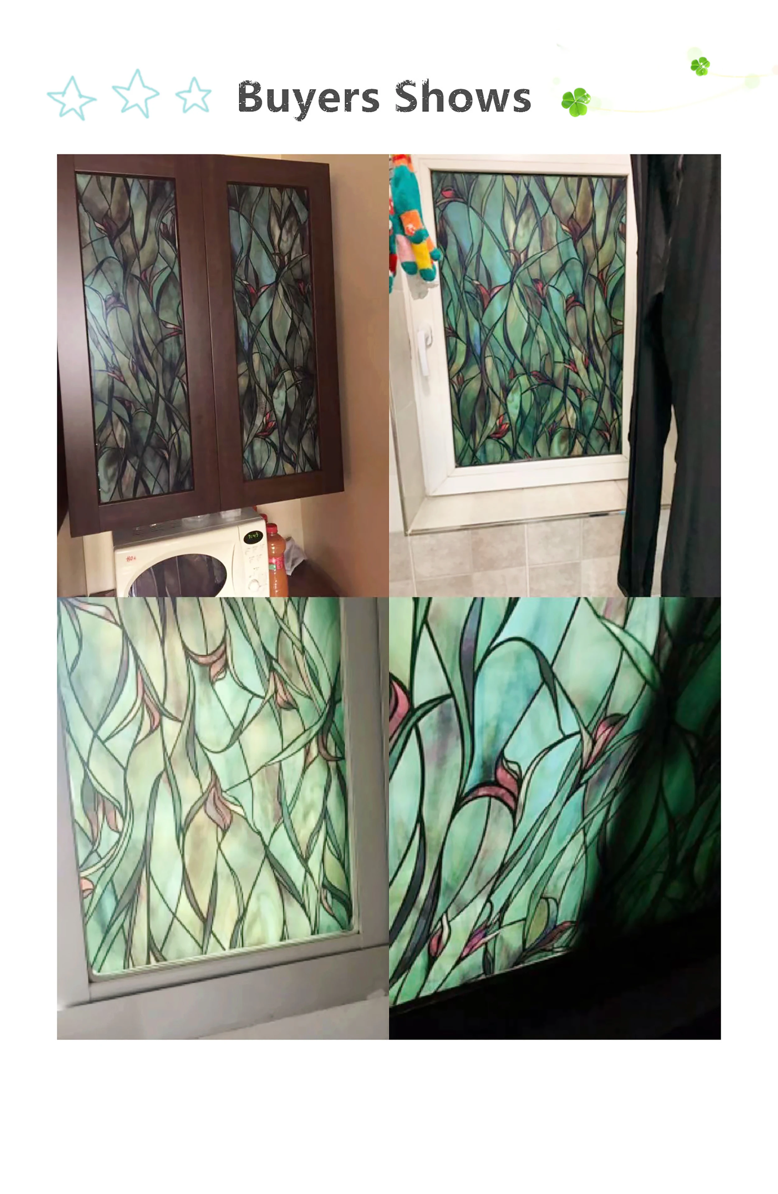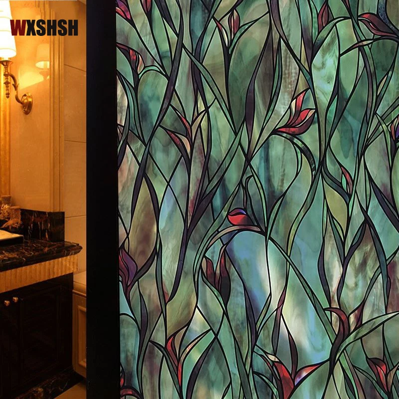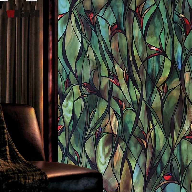 2 м длинная американская зеленая листья цветочный узор витражная пленка Прямая поставка статические липкие стеклянные наклейки