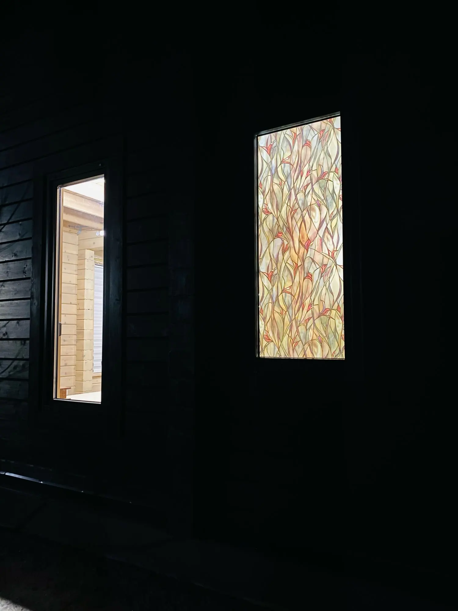 Плюсы - плотная плёнка, не порвётся от неосторожности, цвета и рисунок очень красивые, матовое покрытие, действительно похожее на витраж, если не приглядываться, на ощупь, как ткань. Минусы - односторонняя, со второй стороны мутно- серая с просвечивающим рисунком, слишком приглашает свет, чтобы использовать на внешних окнах, больше подойдёт для межкомнатных.
