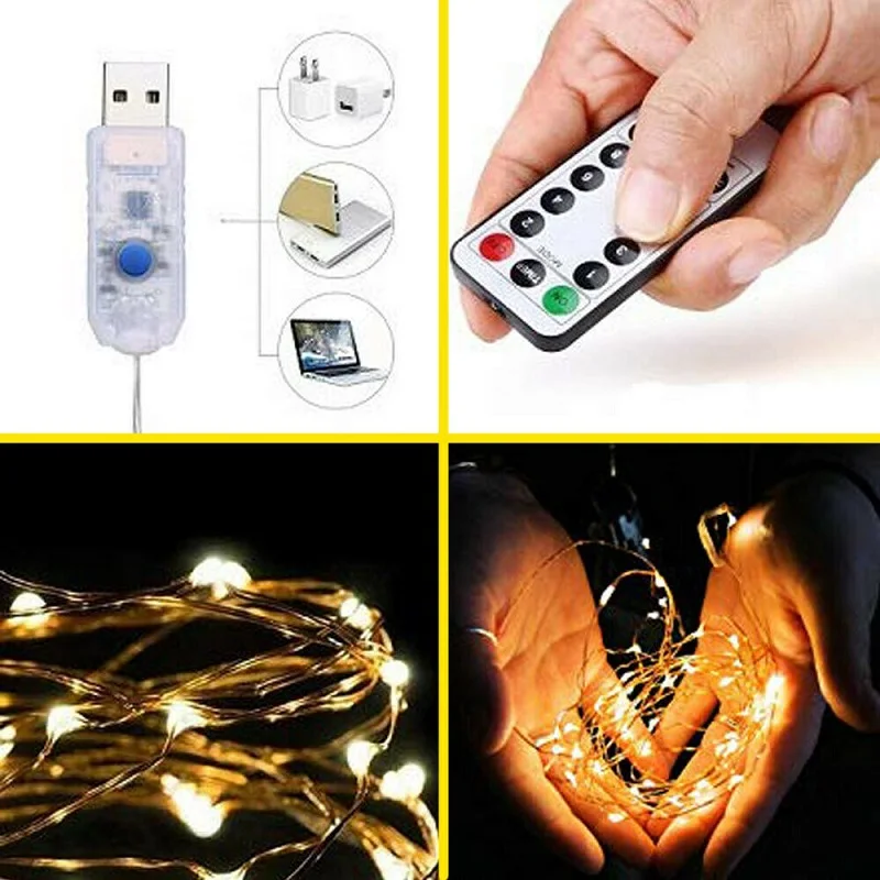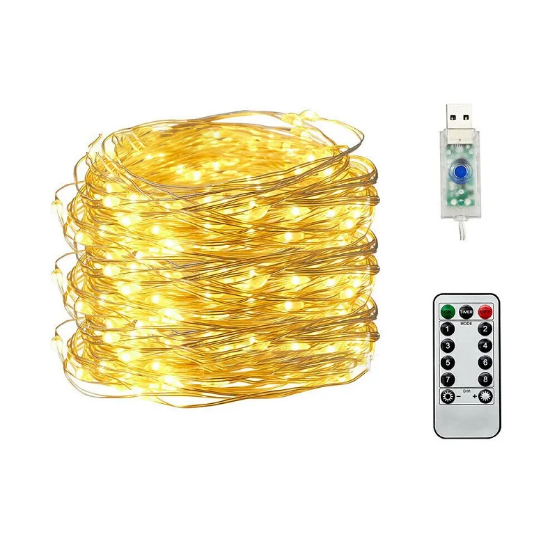 Гирлянда из медного провода, 50100200 светодиодный, USB-разъем, гирлянда с пультом дистанционного управления, 8 режимов, освещение, водонепроницаемый пульт дистанционного управления, таймер