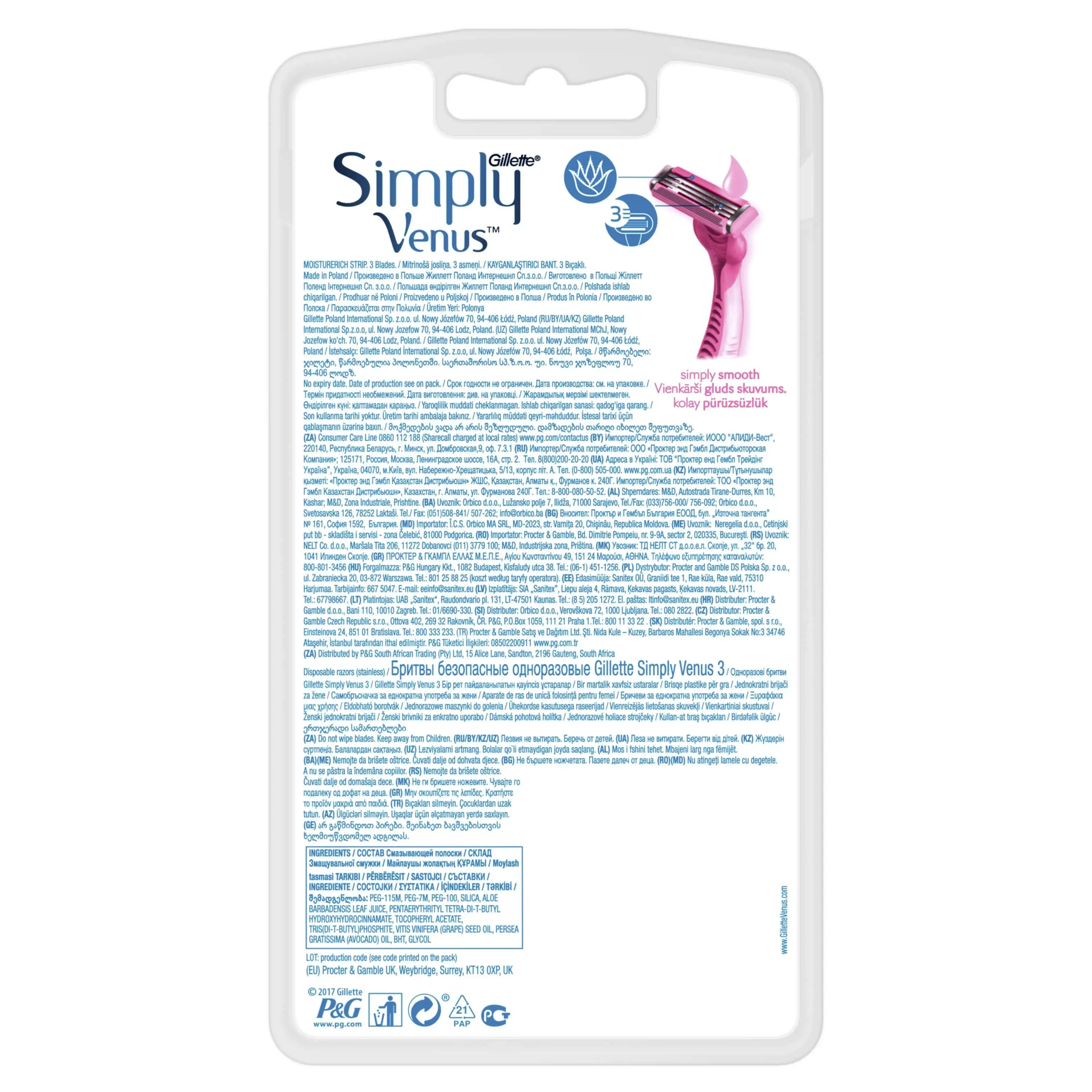 Женская одноразовая бритва Gillette Simply Venus 3 снабжена тремя лезвиями для еще более гладкого бритья с меньшим количеством порезов и царапин (по сравнению с Simply Venus 2). Кроме того, увлажняющая полоска MoistureRich обеспечивает лучшее скольжение, а защитные микропластины помогают сократить количество порезов и царапин.