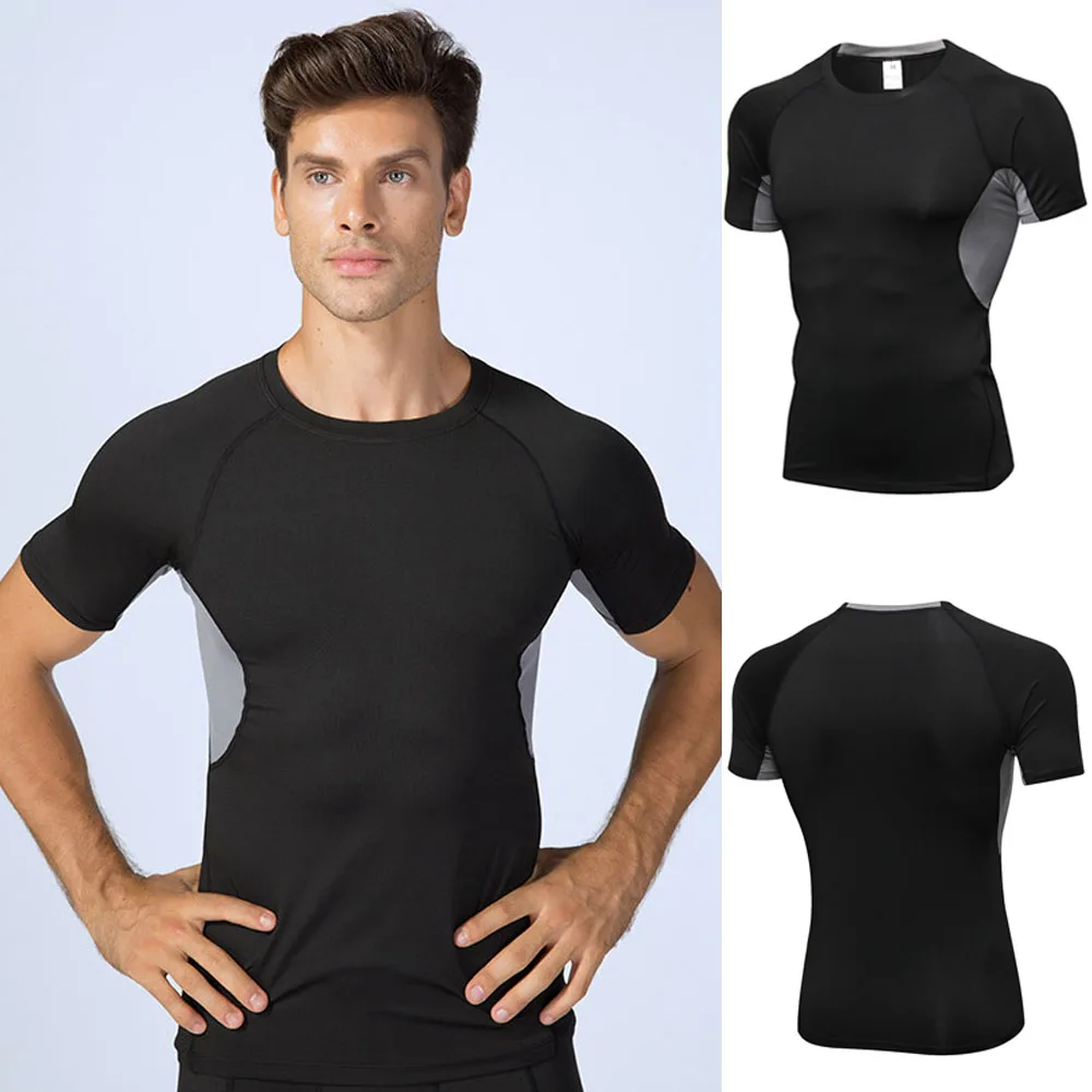 Лидер продаж, летние мужские футболки, быстросохнущая спортивная одежда с коротким рукавом для бега, футбола, баскетбола, облегающие для тренировок