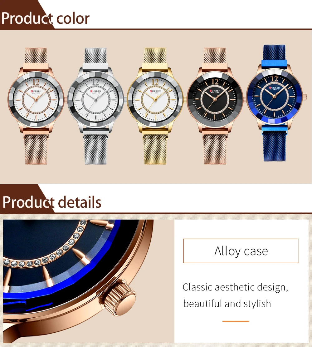 Часы CURREN женские кварцевые, модные водонепроницаемые брендовые роскошные, для девушек