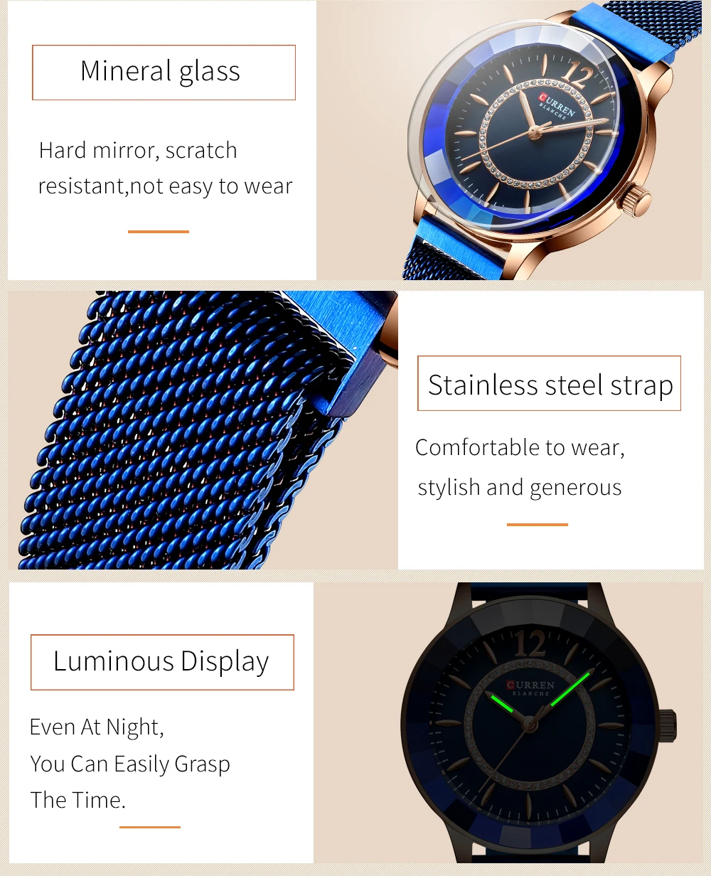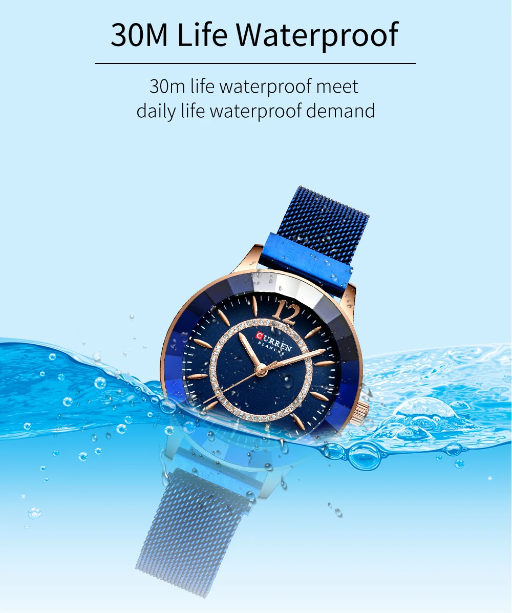Часы CURREN женские водонепроницаемые, брендовые Роскошные Синие Кл...