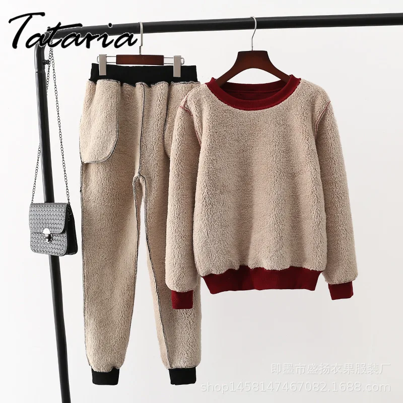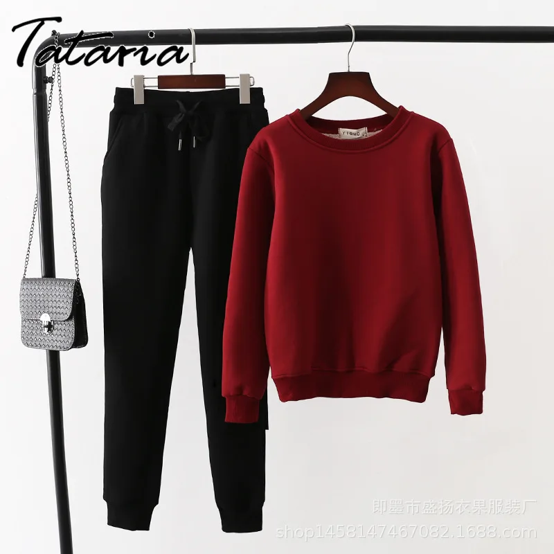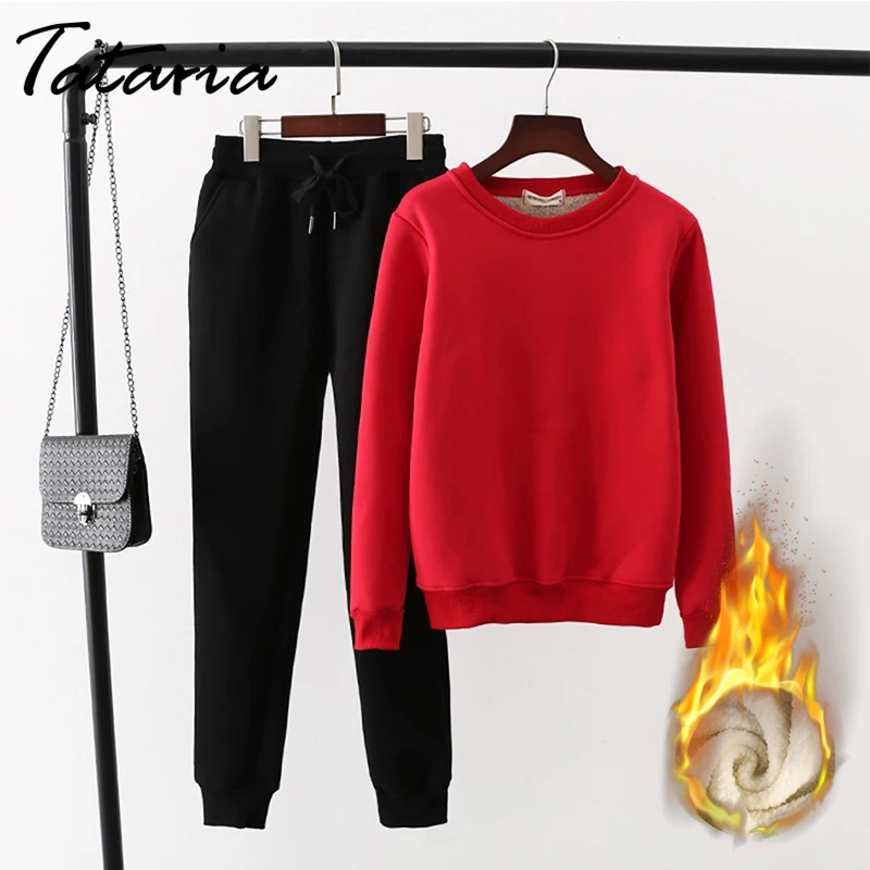 Женский спортивный костюм из 2 предметов Tataria, зимний утепленный свитер с длинным рукавом, женские теплые костюмы, бархатный Повседневный Спортивный костюм