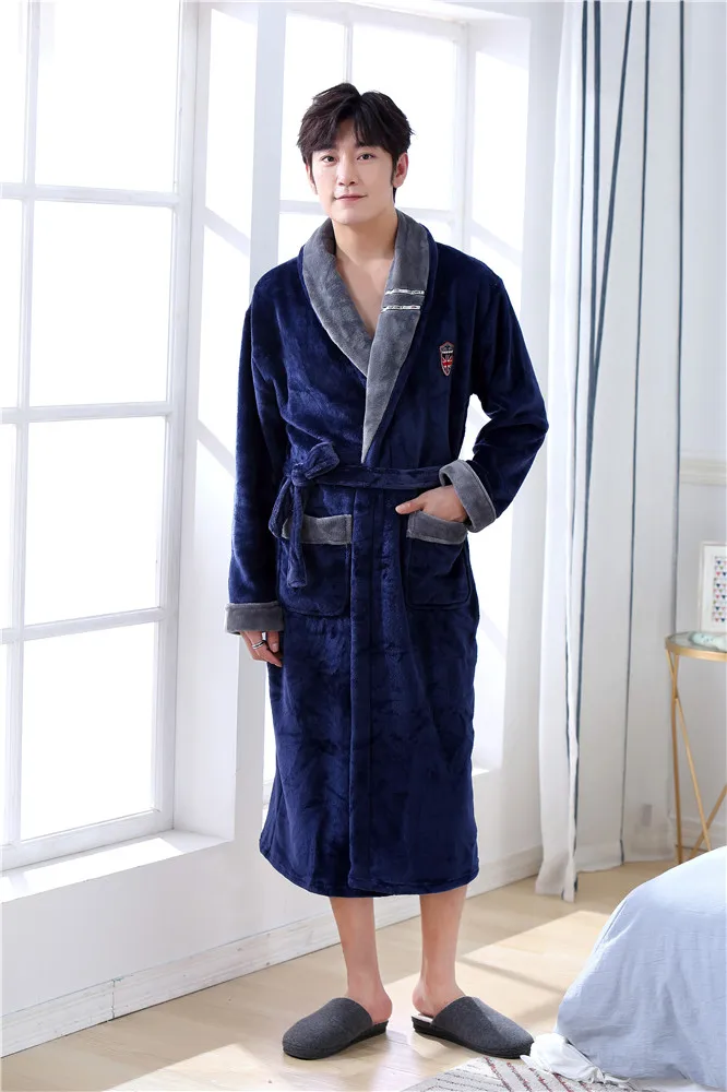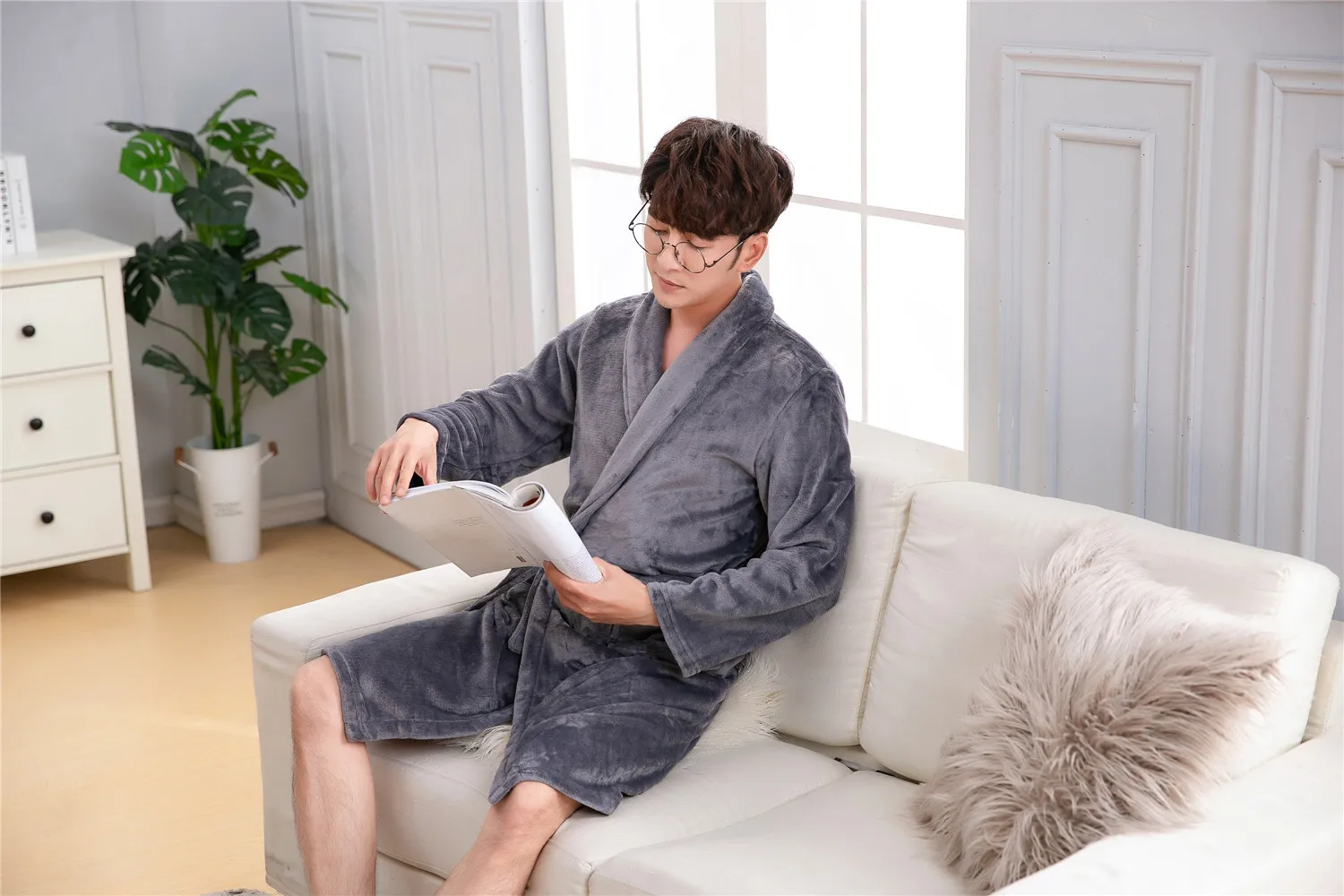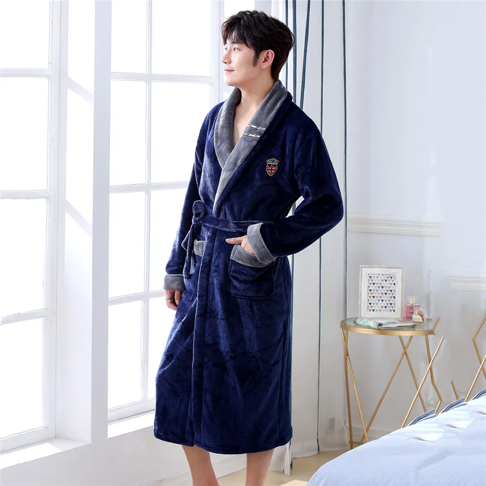 Фланель размера плюс мужская халат-кимоно Домашняя одежда Удобная Повседневная Пижама сохраняющая тепло мягкая ночная рубашка