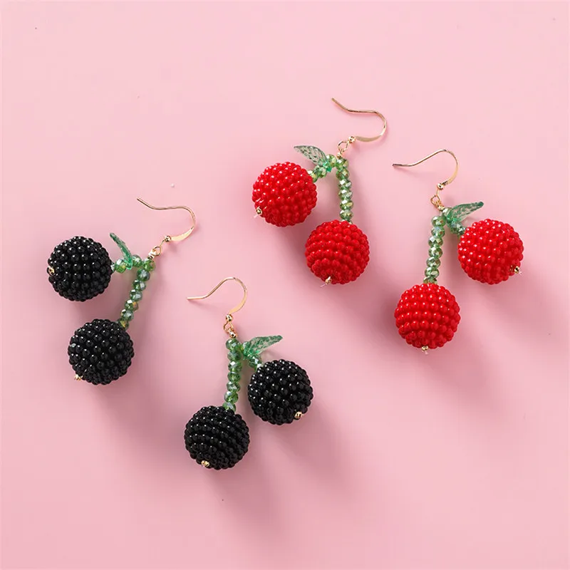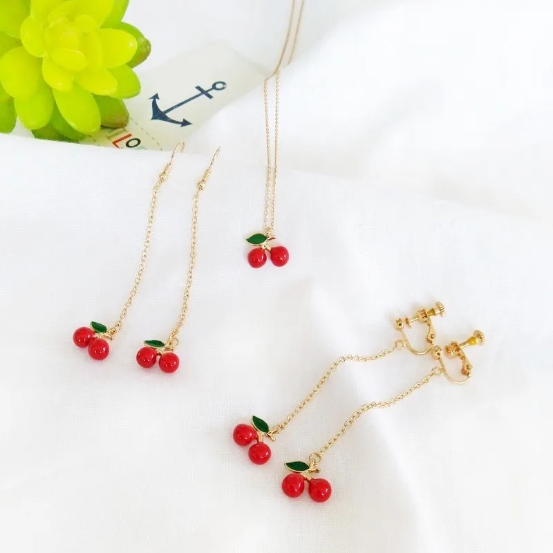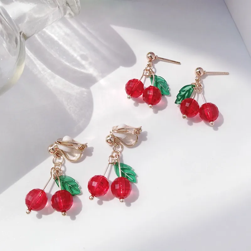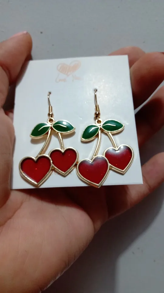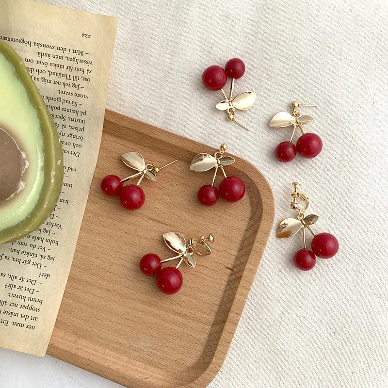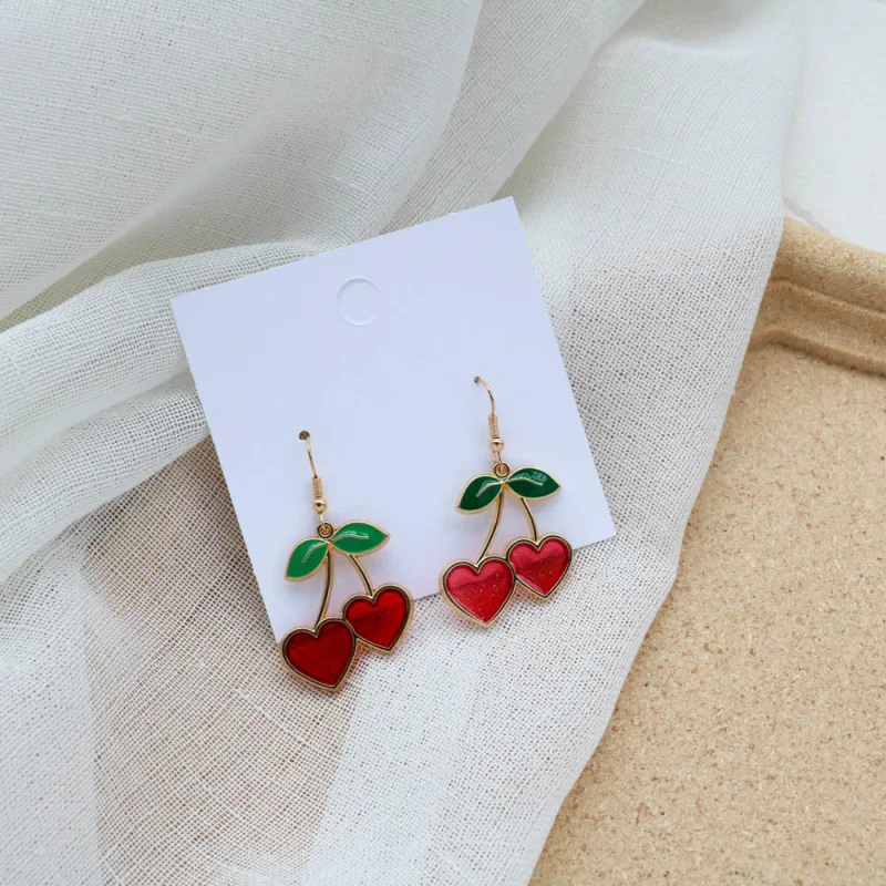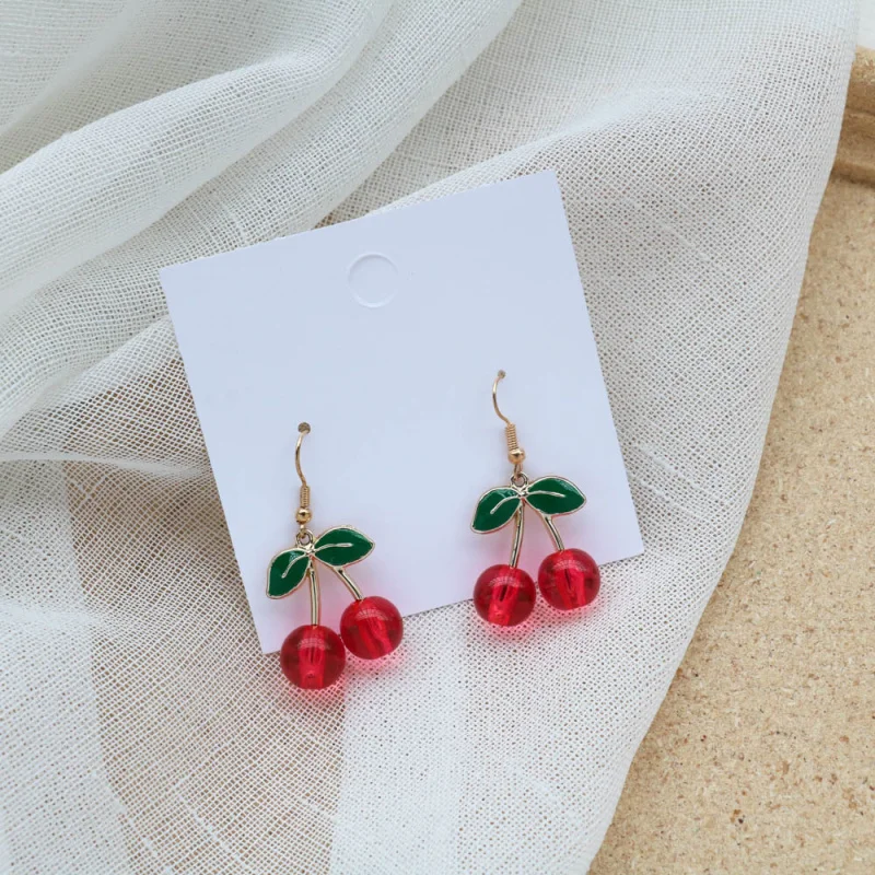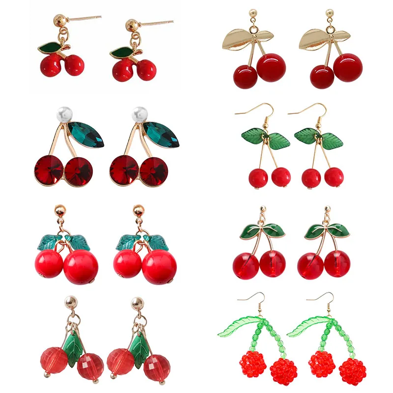 Серьги-подвески женские, красные, Вишенки, в форме фруктов