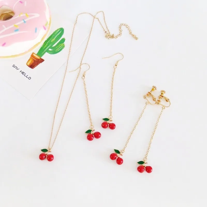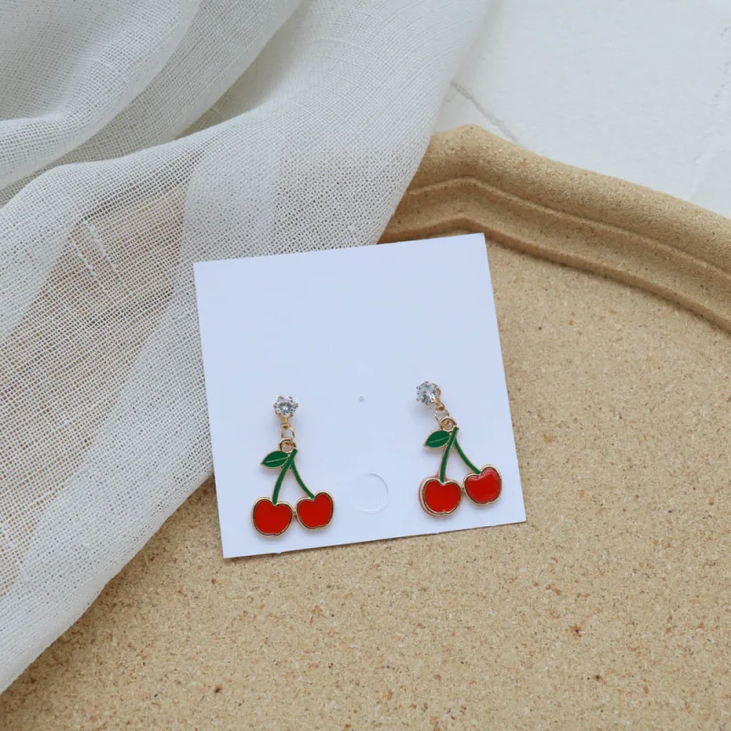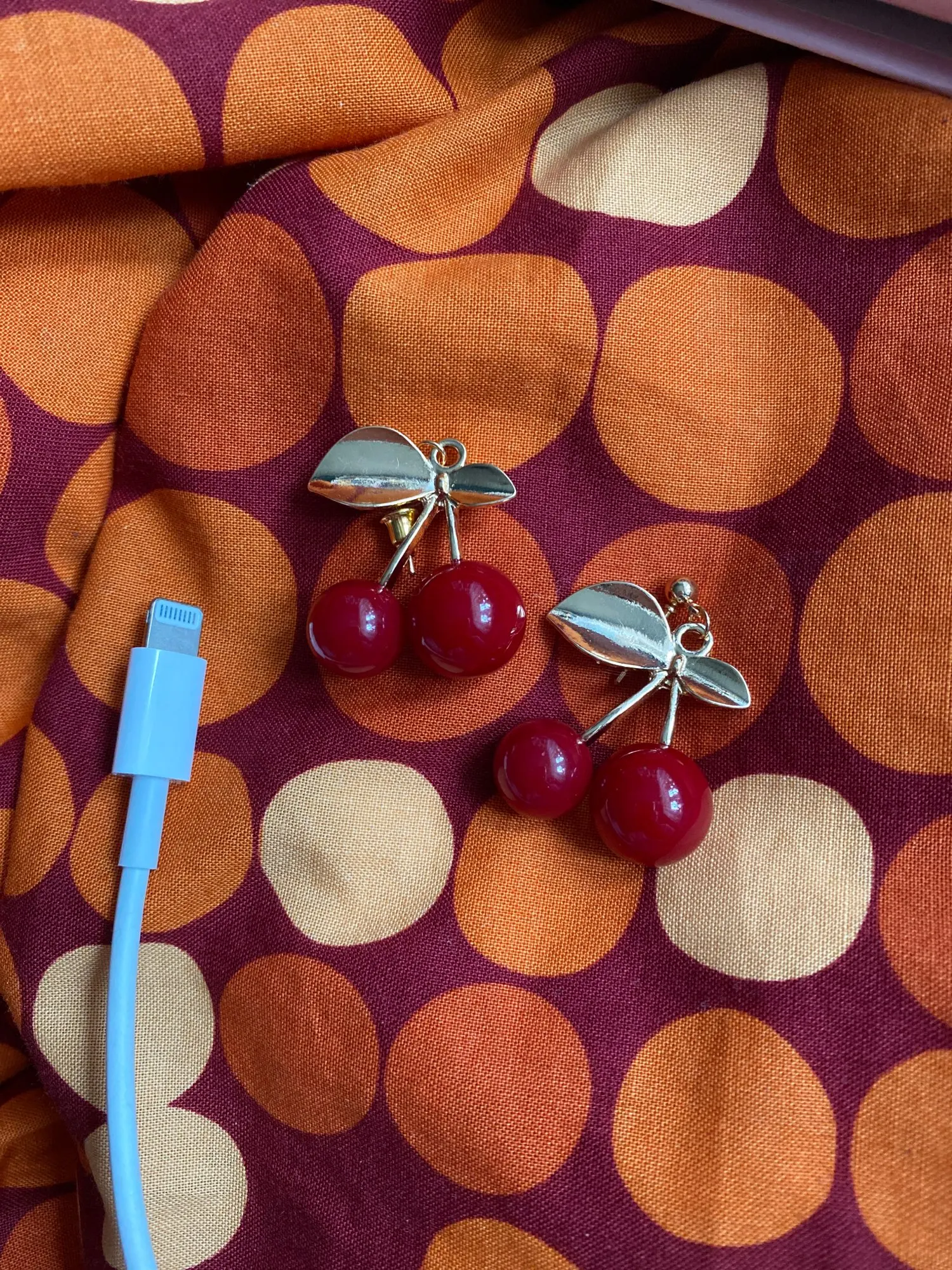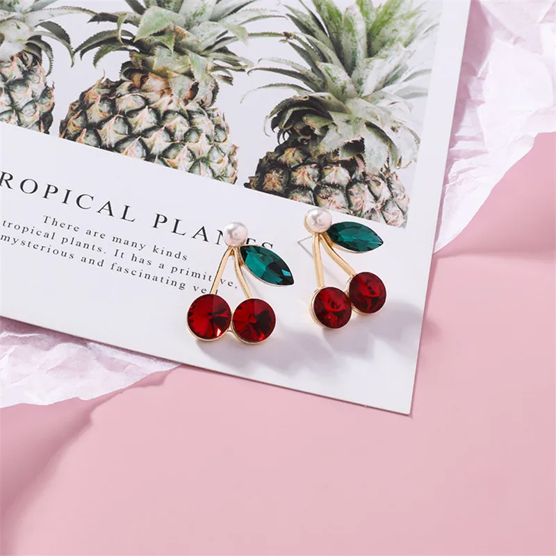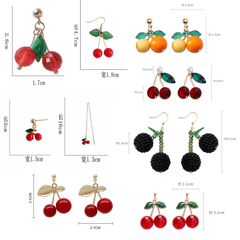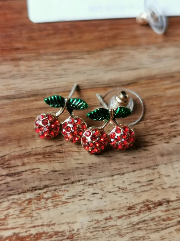 Серьги-подвески женские, красные, Вишенки, в форме фруктов
