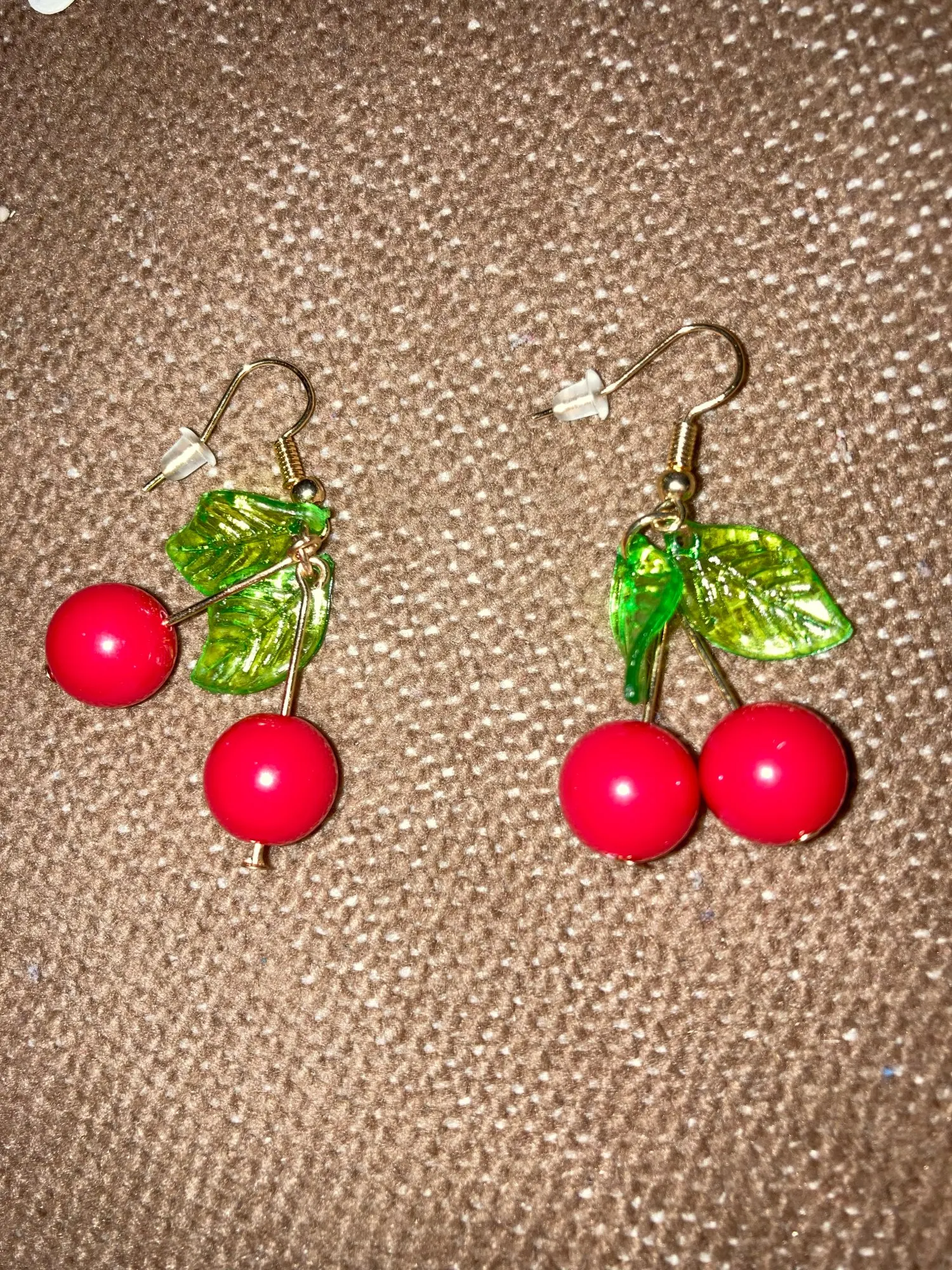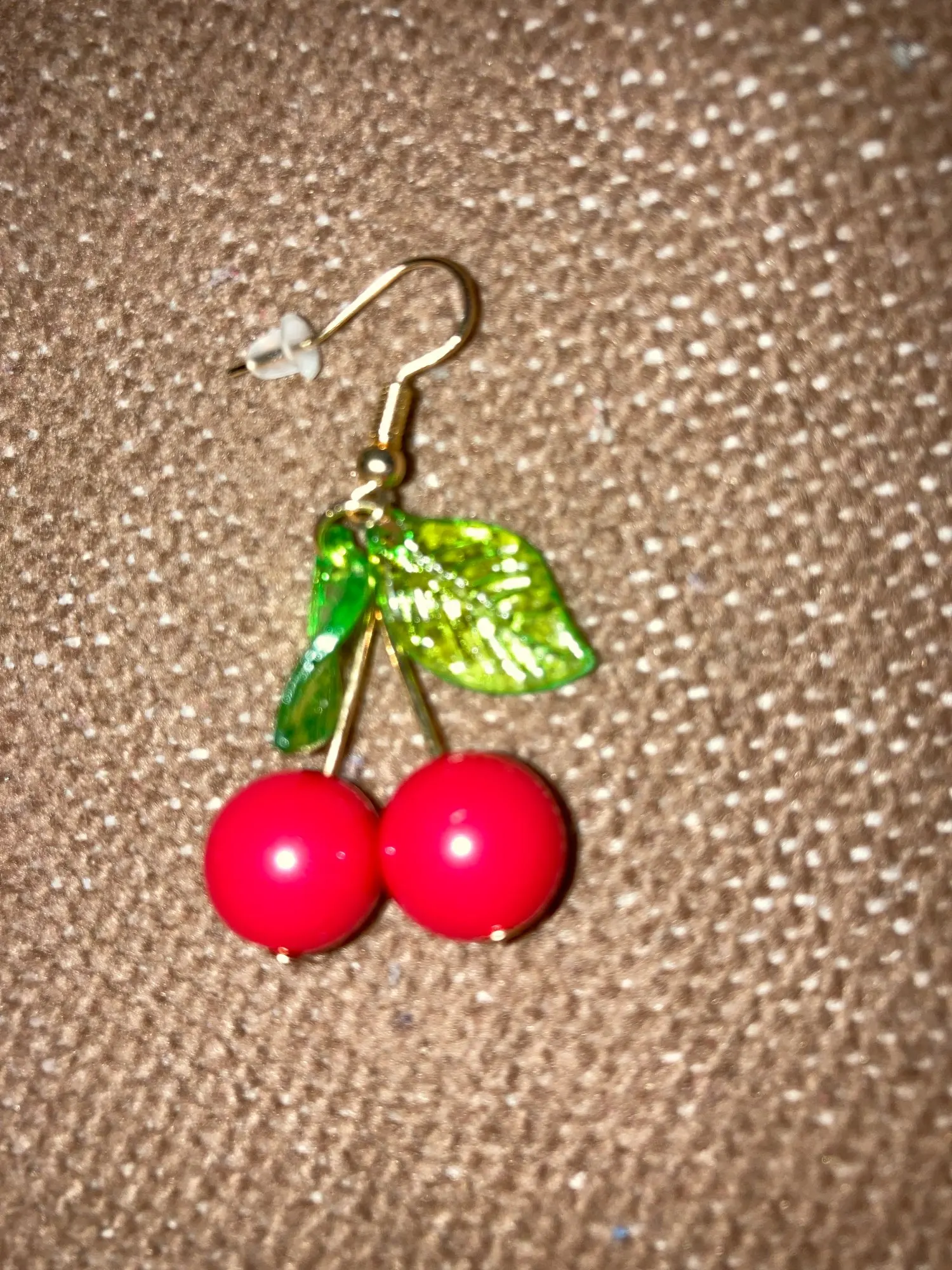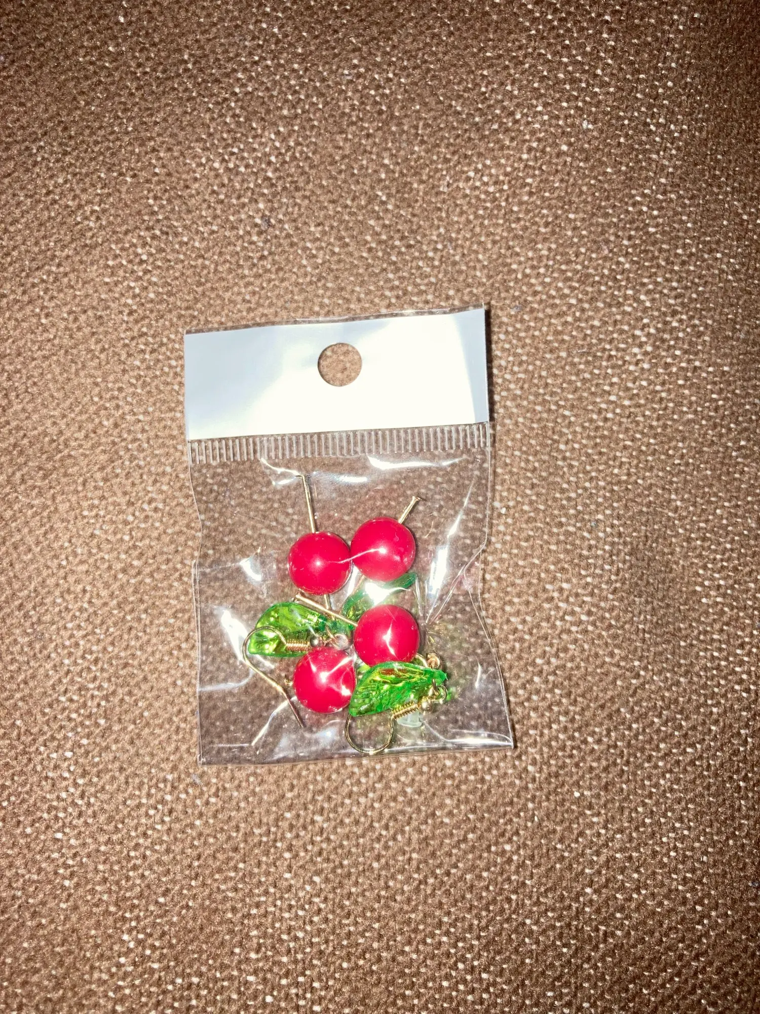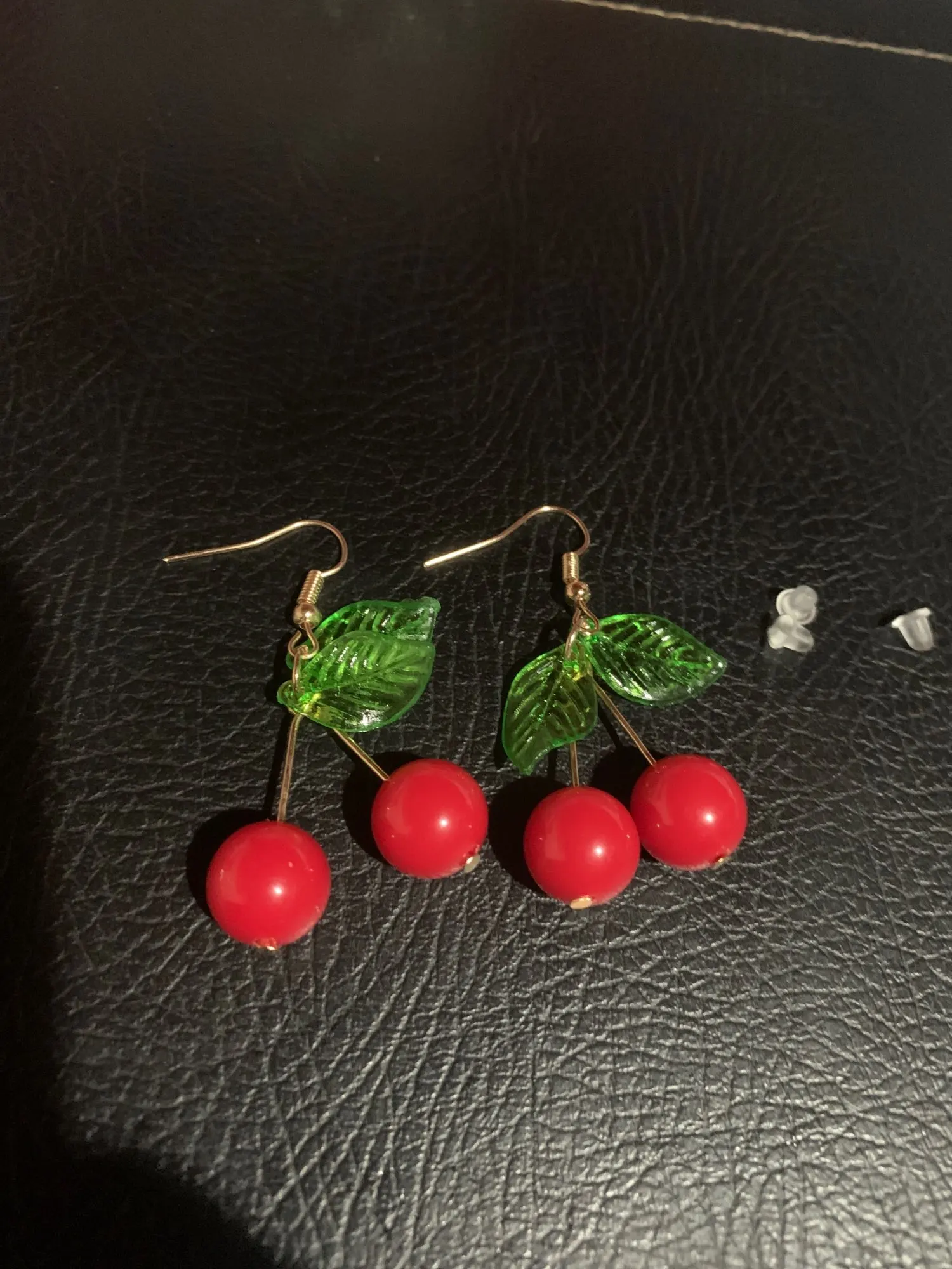 Серьги-подвески женские, красные, Вишенки, в форме фруктов