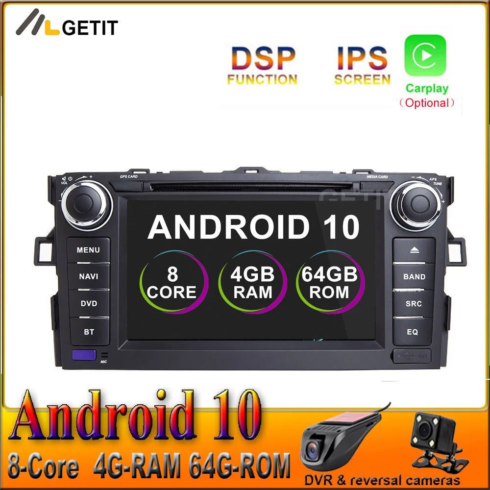 64G DSP Android 10 автомобильный DVD-плеер стерео для Toyota Auris (2008-2012) автомобильное радио GPS-навигация