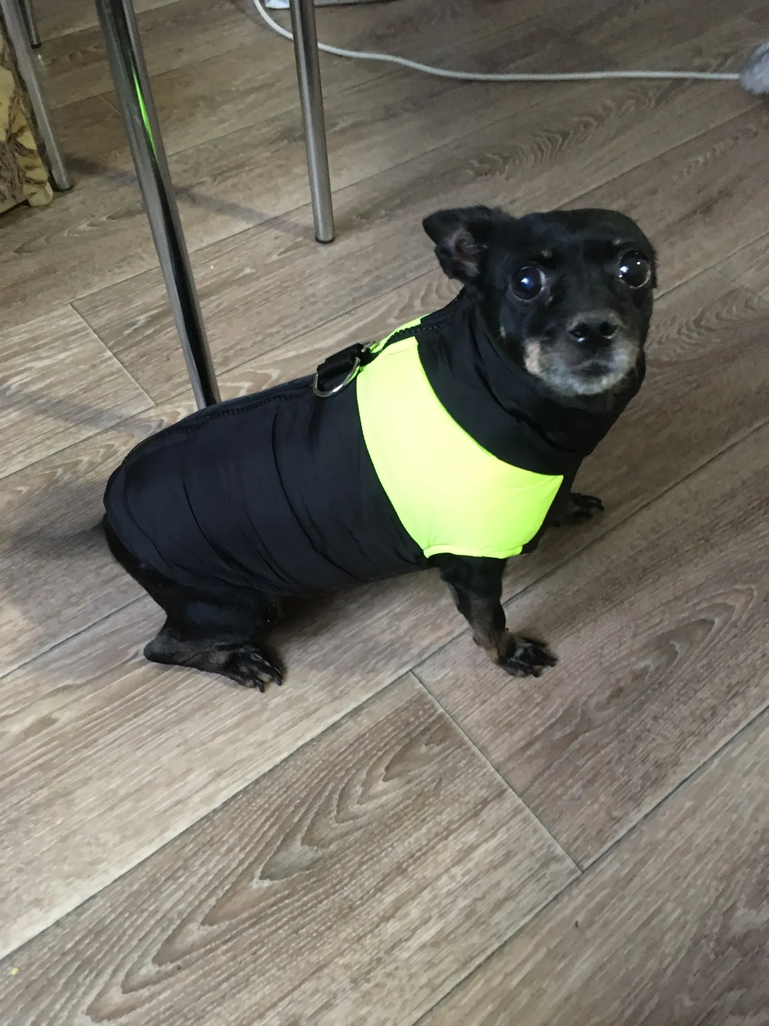 Жилеточка хорошая, пошита качественно, на чихуахуа 2,8 кг подошёл размер S. Доставка быстрая. Спасибо продавцу.