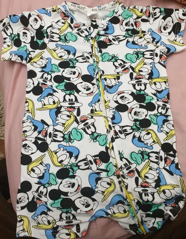 Отличный материал, очень мягкий на ощупь, легкая ткань, очень подходит для лета, цвет действительно яркий, точно такой же, как на картинке. Для 30 дюймового длинного ребенка, Размер 24 месяца, отлично подходит.