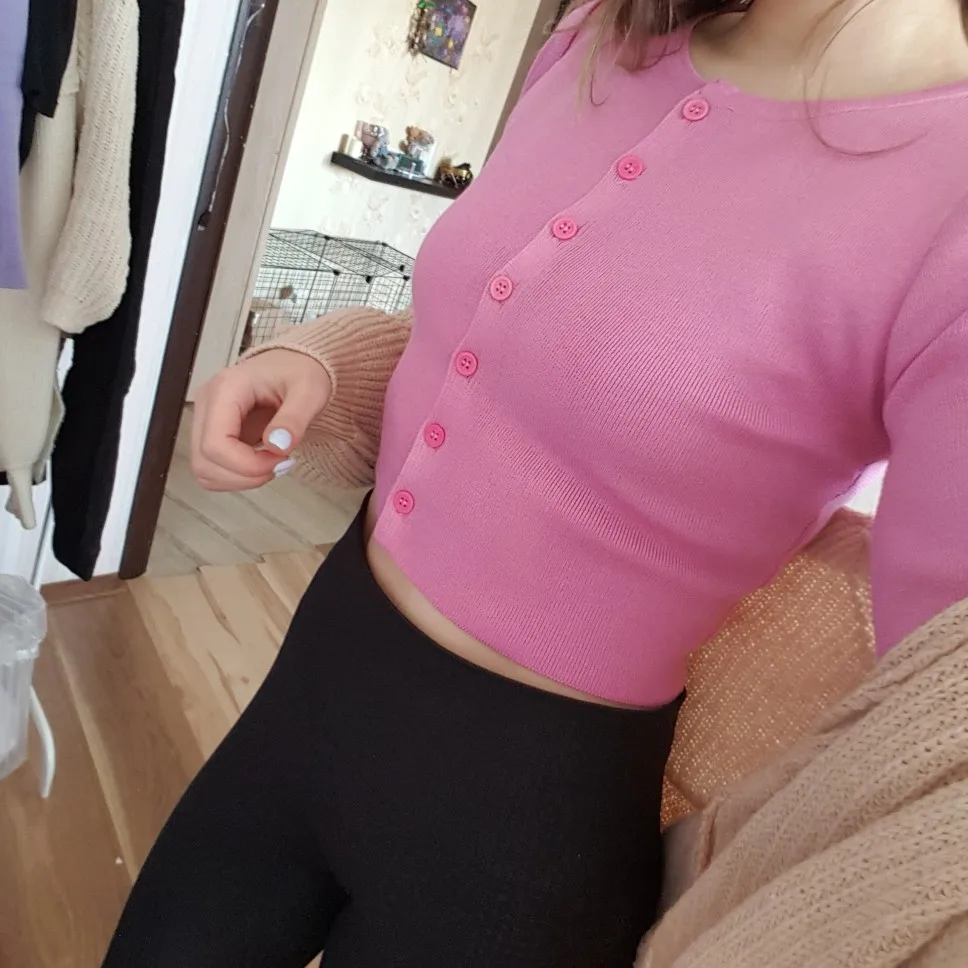 Кофта очень приятная на ощупь, все очень качественно, только в одном месте торчала одна маленькая ниточка, но это поправимо. Пуговицы не выглядят дёшево, хорошо пришиты. Цвет немного ярче, чем на фото. На ОГ-84 и ОТ-65 заказала размер s.