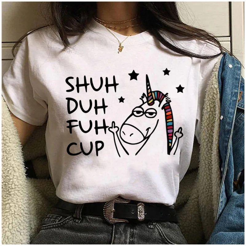 Женская футболка с забавным мультяшным единорогом ulzzang 90s, уличная футболка в Корейском стиле, гранж, Женская Повседневная футболка