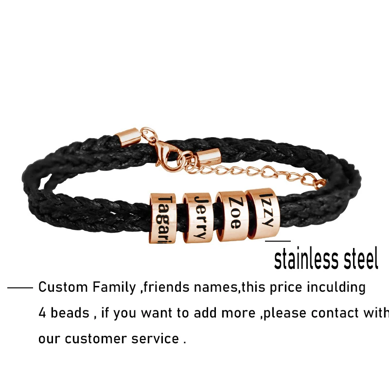 Персонализированные мужские браслеты с несколькими слоями, плетеный браслет из титановой стали с кожаными бусинами на заказ
