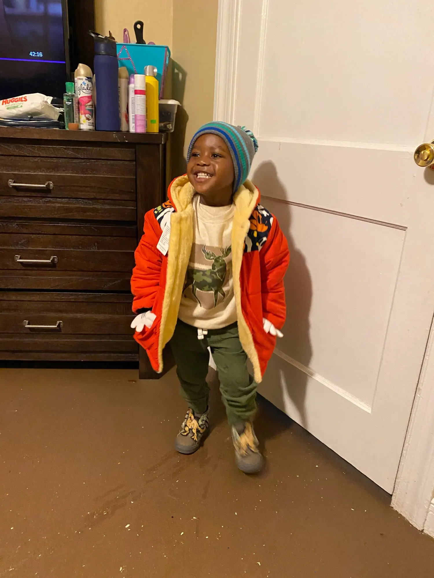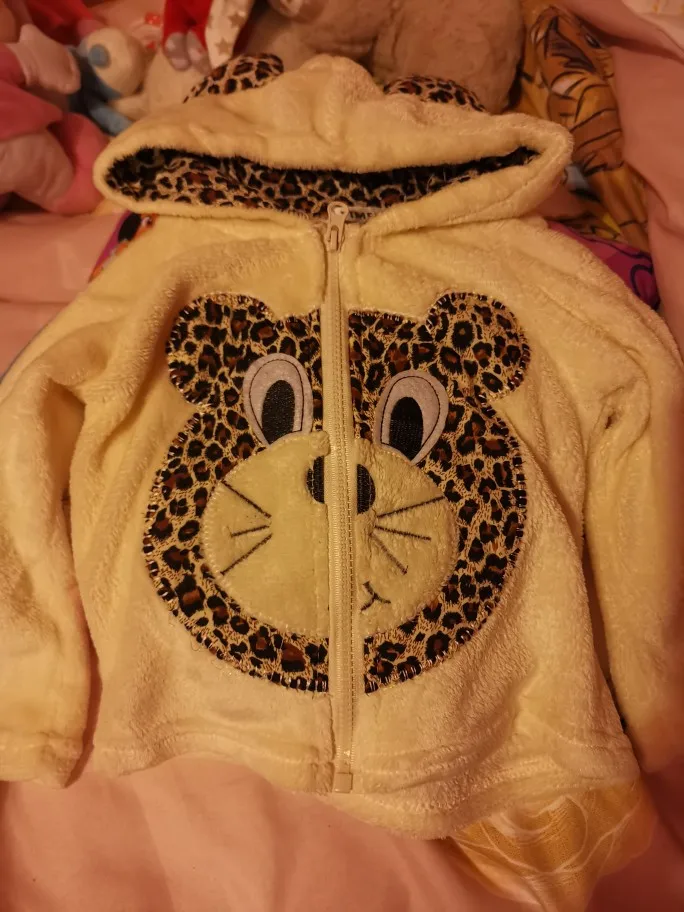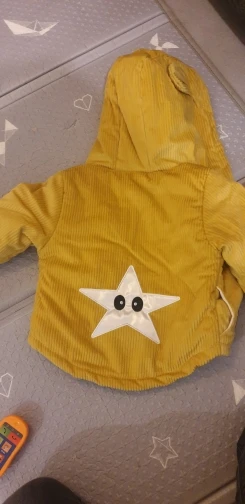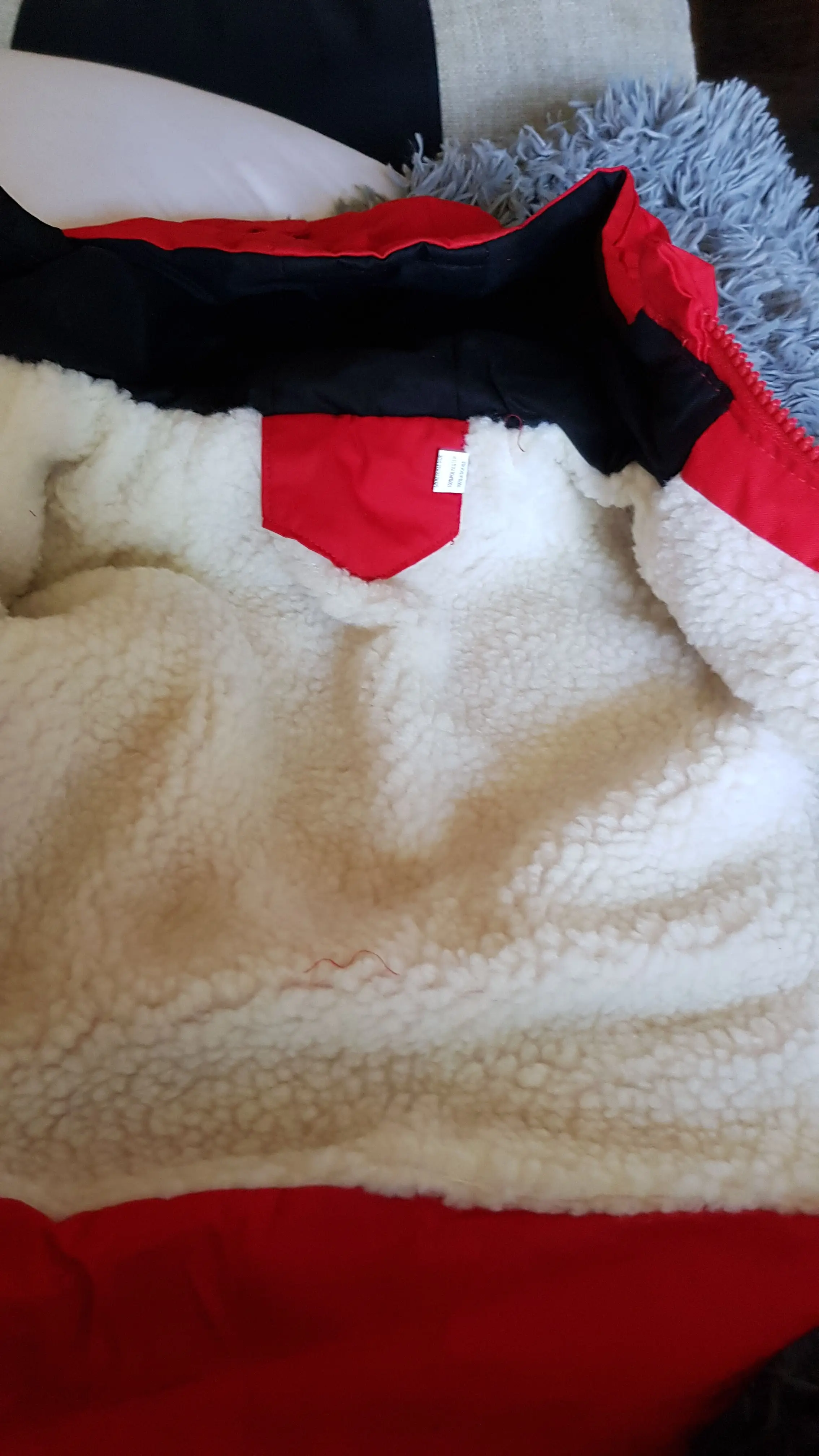 comme photo. tres mignon manteau. bebe est content aussi. pris taille 4 ans pour être sur que c'est la bonne taille. un peut grand. pas grave. pour automne et hiver prochain. manteau bien chaud et douche à l'intérieur. venue en France en trois semaines