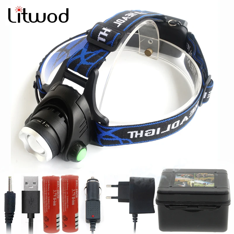 1 налобный фонарь + 1x USB зарядное устройство + 1x зарядное устройство + 1x автомобильное зарядное устройство + 2 аккумулятора 18650+ 1x ящик для инструментов