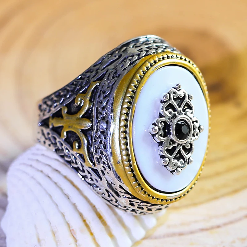 Кольцо на палец O5M401 для мужчин и женщин, винтажное классическое свадебное Ювелирное Украшение в этническом стиле, с круглым овальным кристаллом из смолы, под старину, в форме короны, O5M401