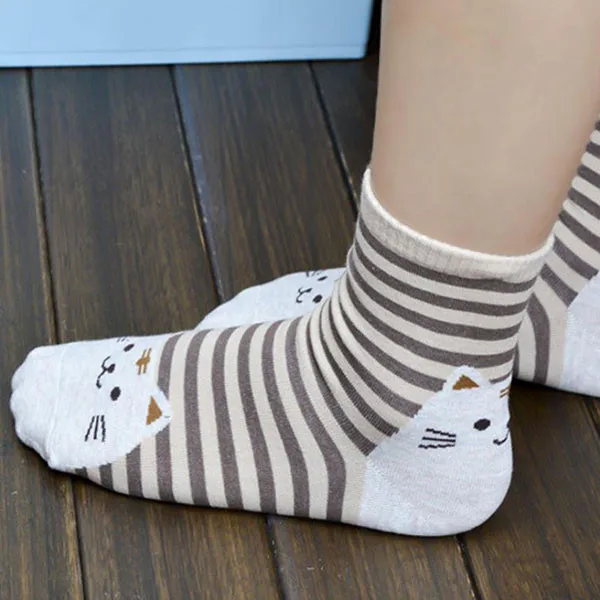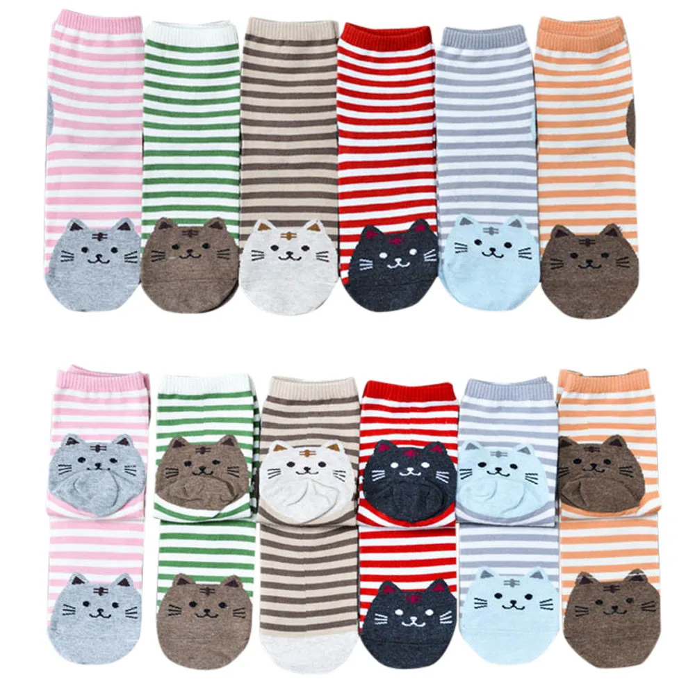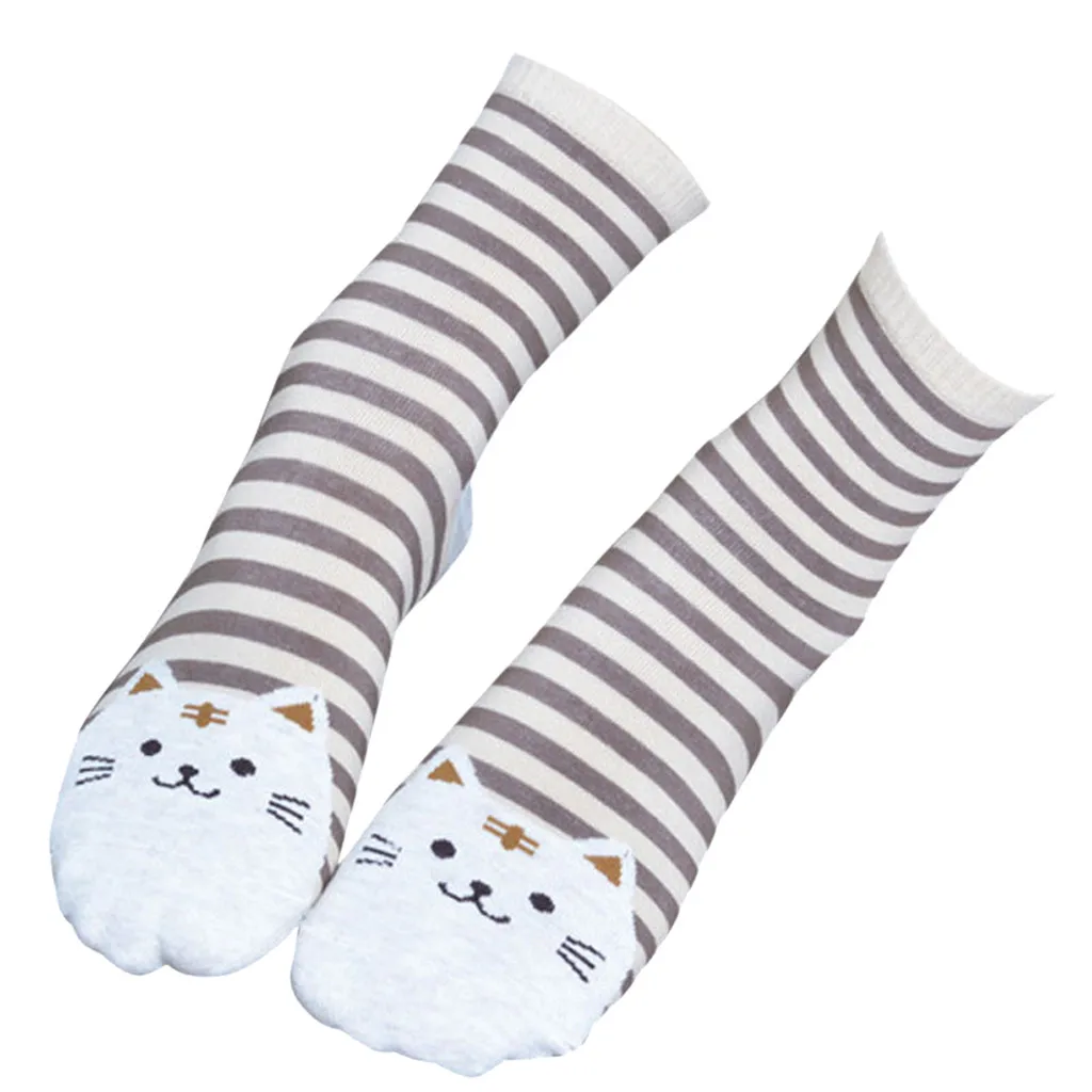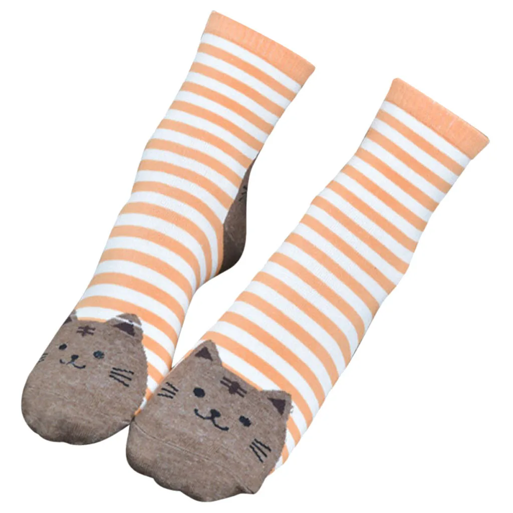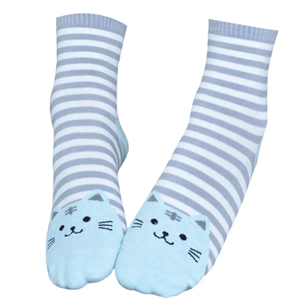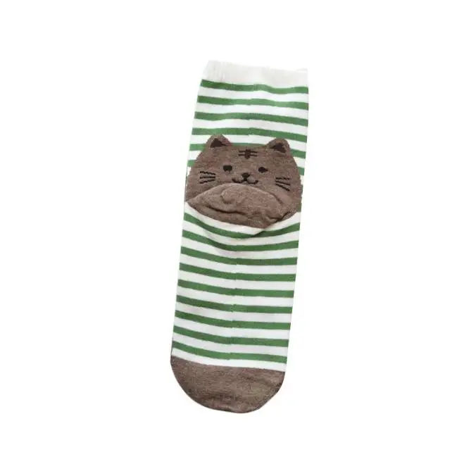 Полосатые носки с 3d-рисунком животных, женские носки с принтом кота, хлопковые носки для пола