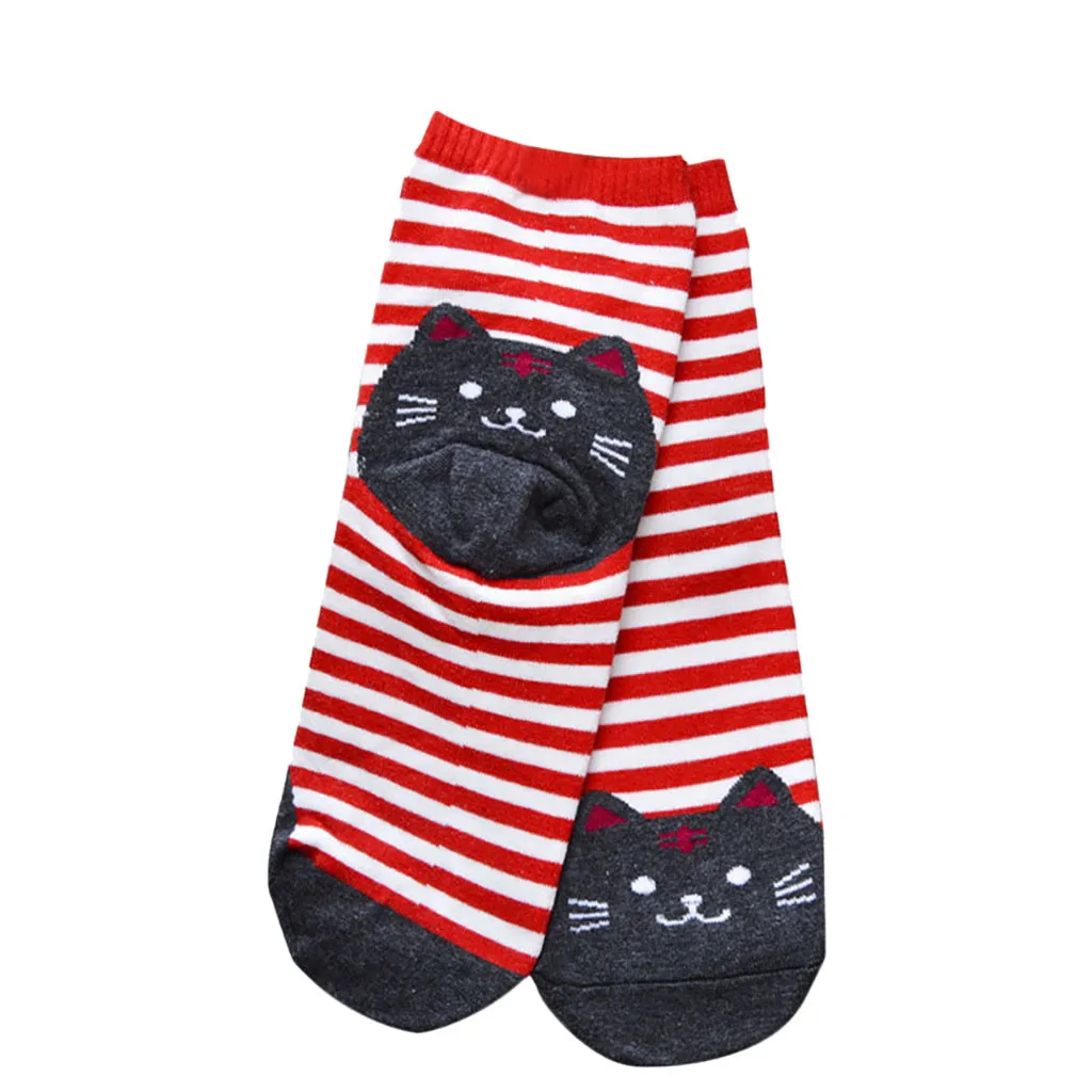 Носки женские, с рисунком кота, полосатые, с 3D-принтом, A30830, зима хлопковые носки для пола