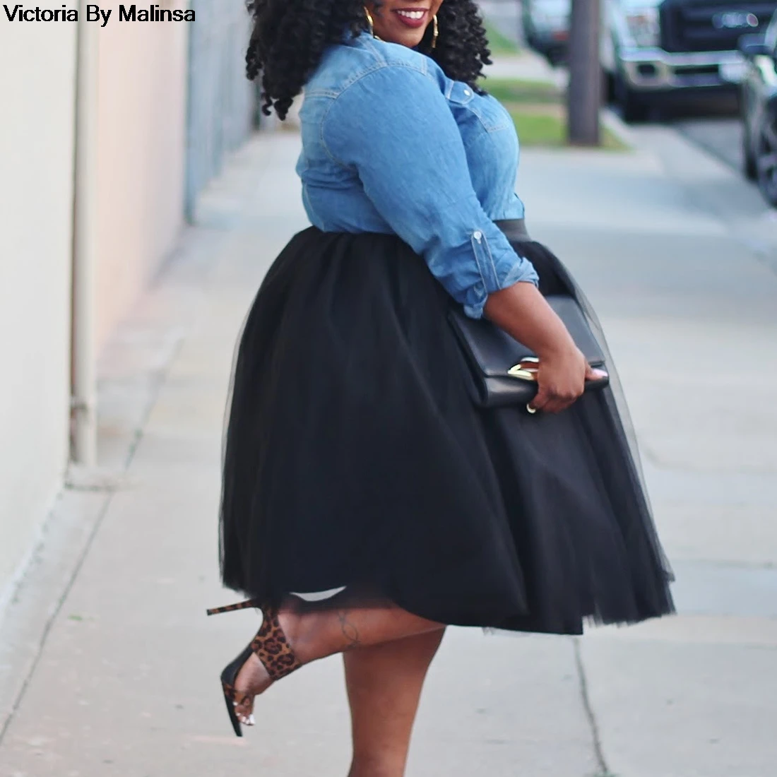 Женская фатиновая юбка на заказ, размера плюс черная, розовая бальная юбка-пачка средней длины с завышенной талией, до колен