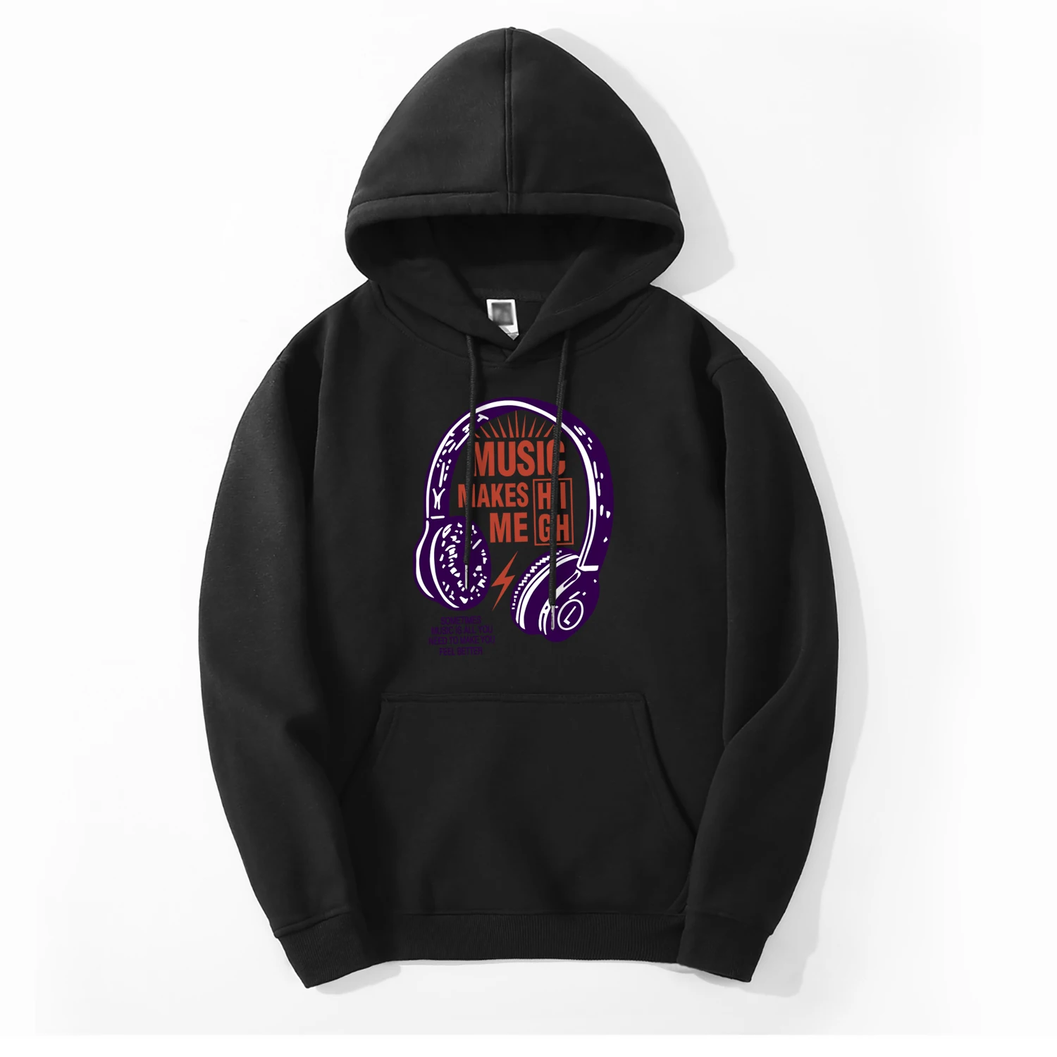Черные толстовки с принтом для девочек, мужская повседневная толсто...