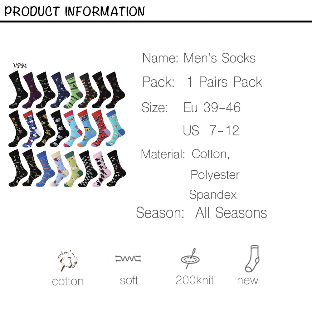 VPM Новинка осенне-зимнего сезона, цветные хлопковые мужские длинные носки Harajuku в стиле хип-хоп Забавный Череп крутая одежда носки для девочек для свадьбы; Рождественский подарок
