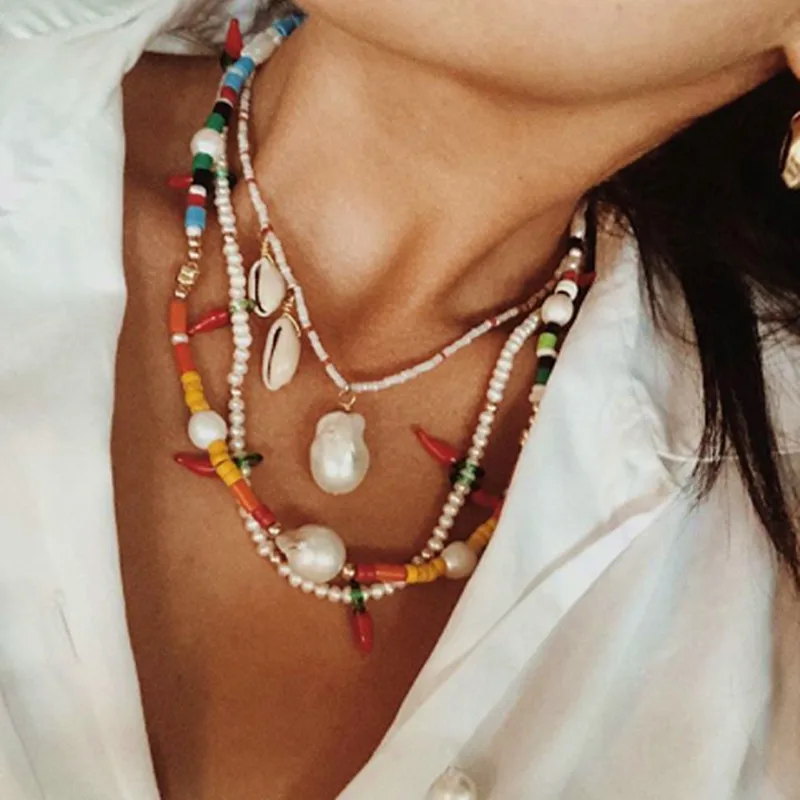 Ожерелье в стиле бохо пука, натуральный Каури, жемчужное ожерелье в стиле барокко, колье-чокер, ювелирные изделия, 2019