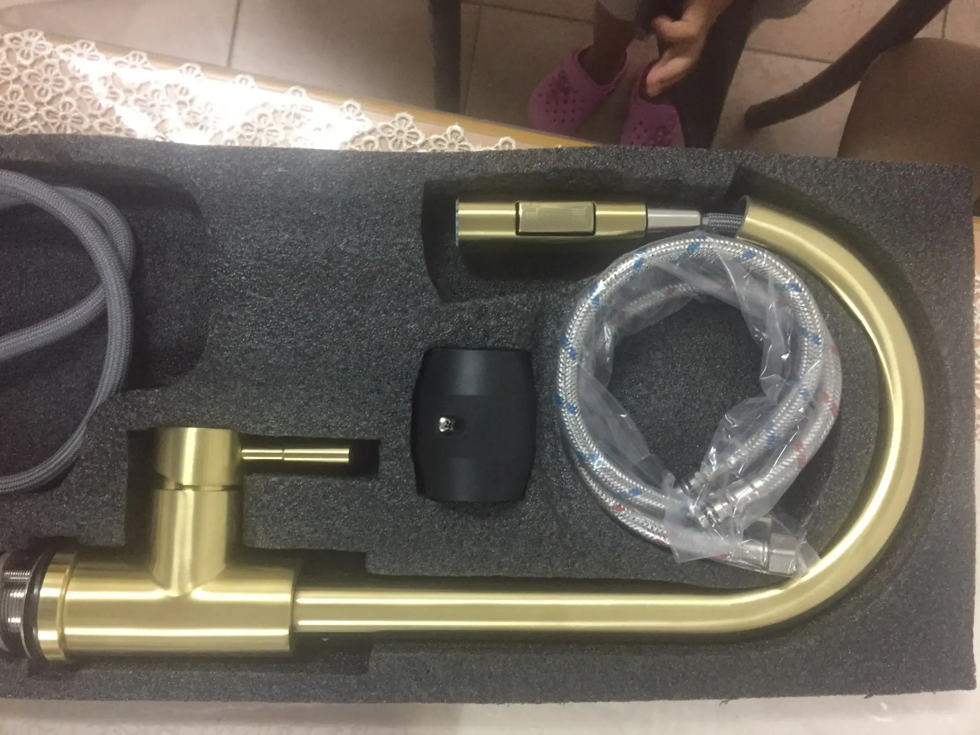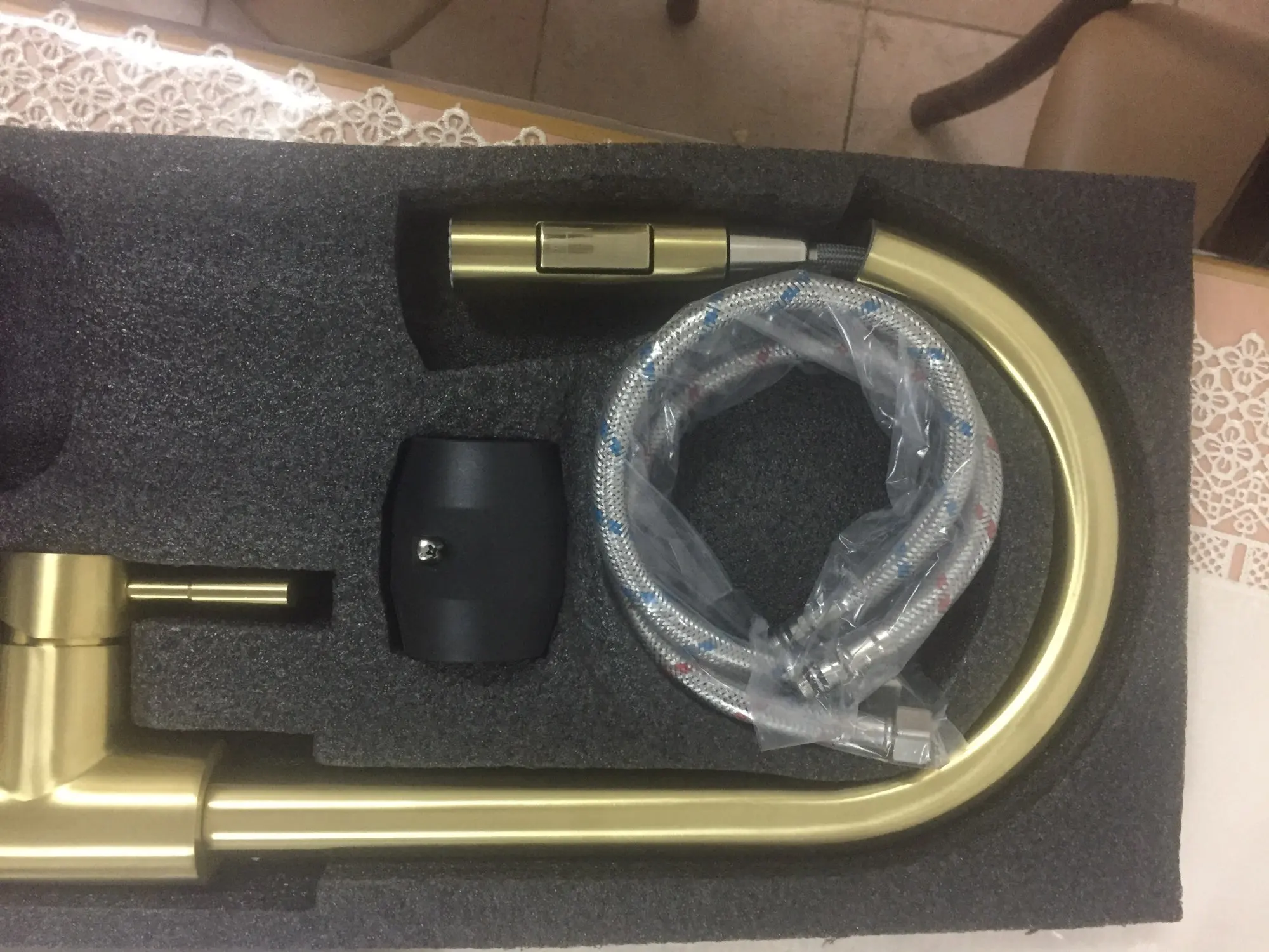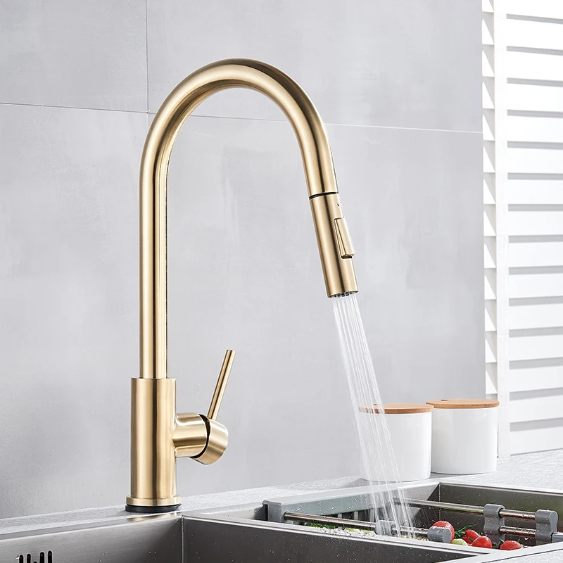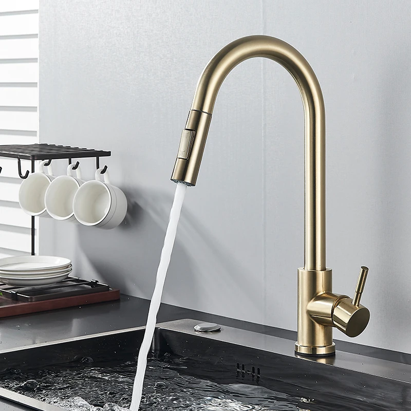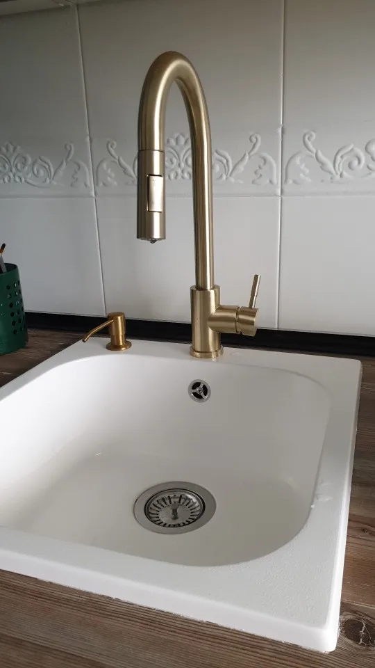 Матовый Золотой смеситель для кухни выдвижной смеситель для кухонной раковины Смеситель с одной ручкой вращающийся на 360 кухонный кран смеситель для горячей и холодной воды