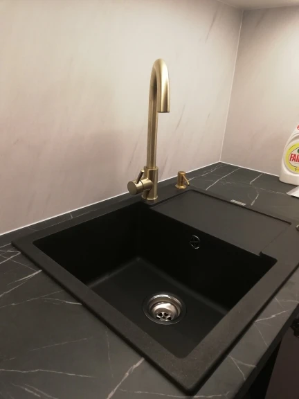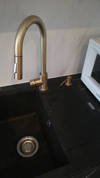 За эти деньги кран - огонь! Немного непривычно, что напор и температура регулируются с задержкой. Но это от длинного шланга. Небольшой люфт присутствует на самом кране, не в месте крепления со столешницей, а выше. А так пока работает. Для него нужна большая раковина. В маленькой много брызг получается.
