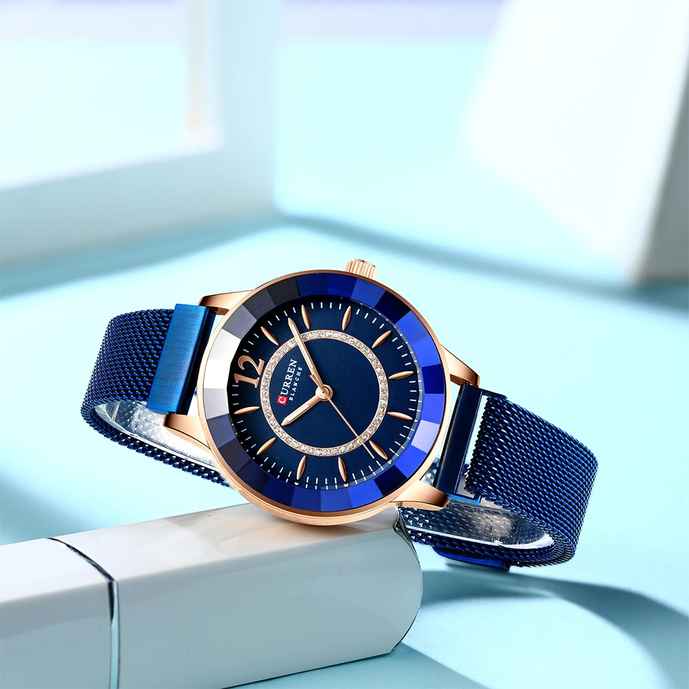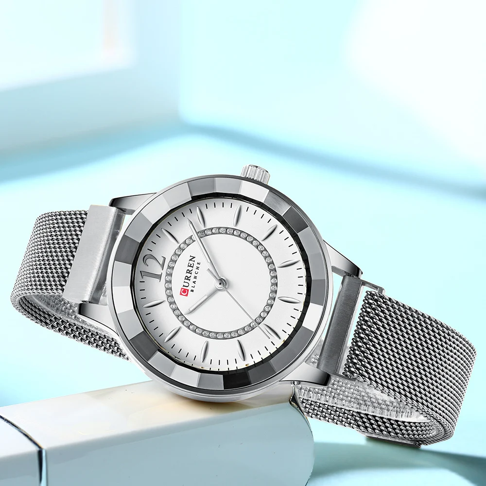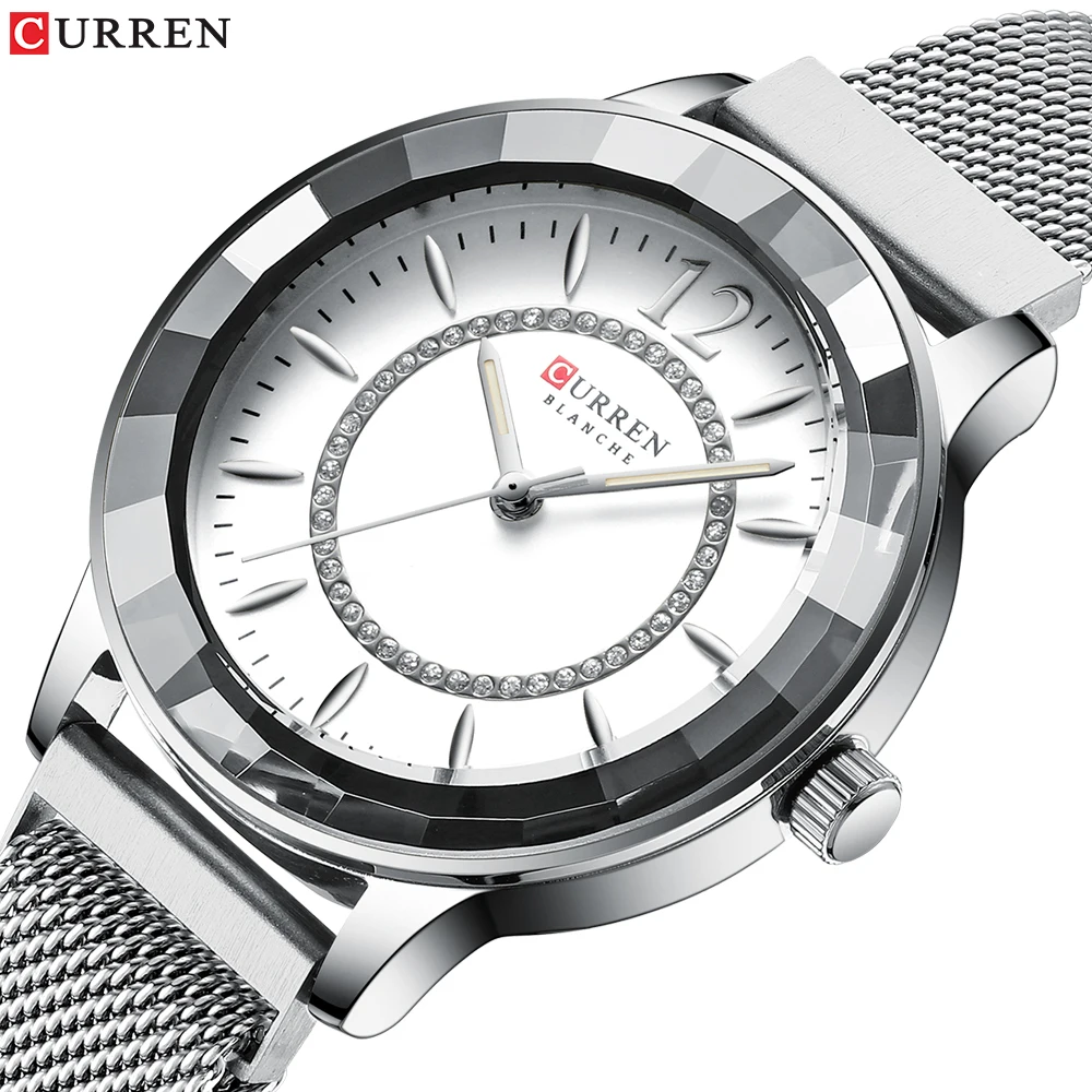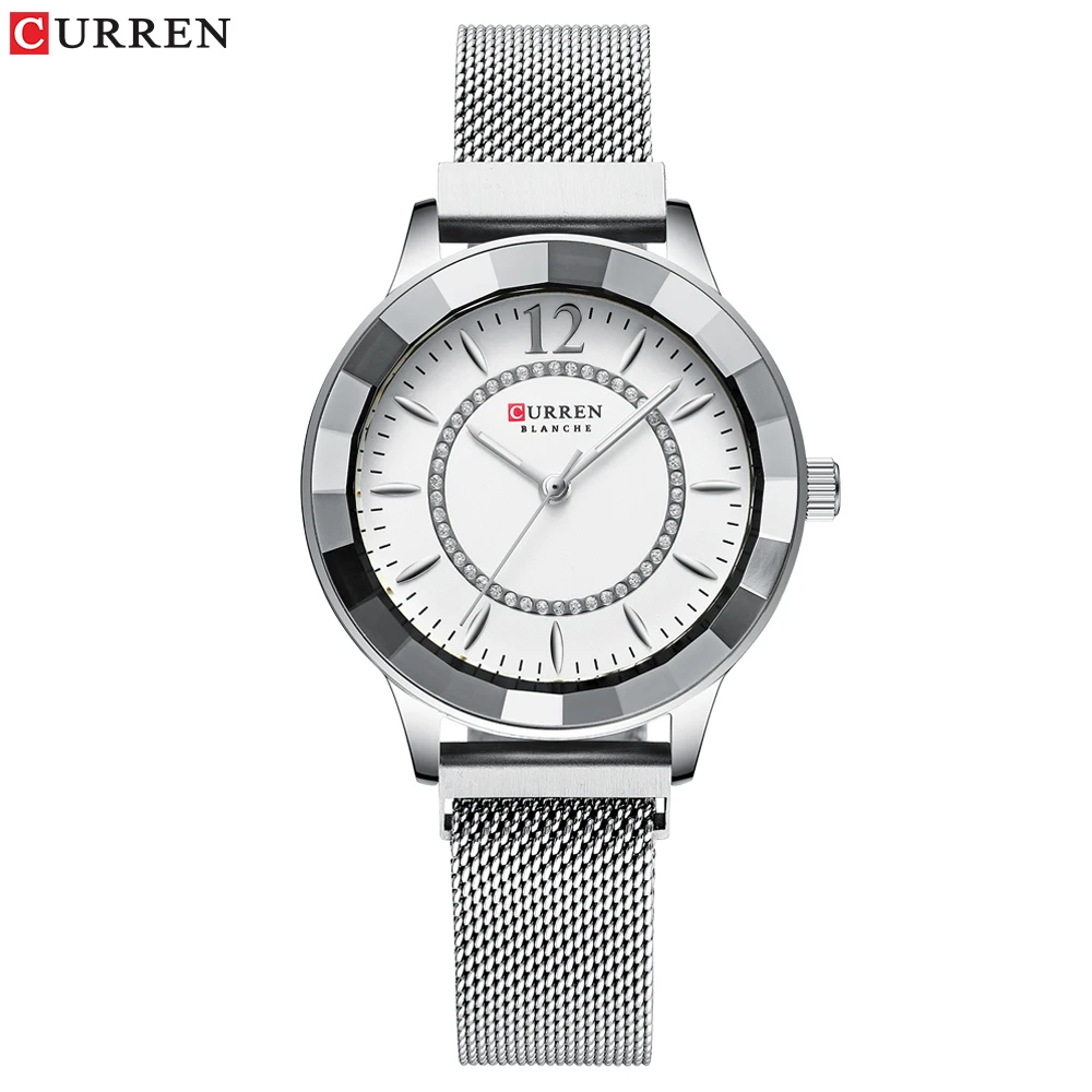Curren очаровательные женские кварцевые часы для женщин стильные Стразы Часы с серебряной сеткой relogio feminino 2019