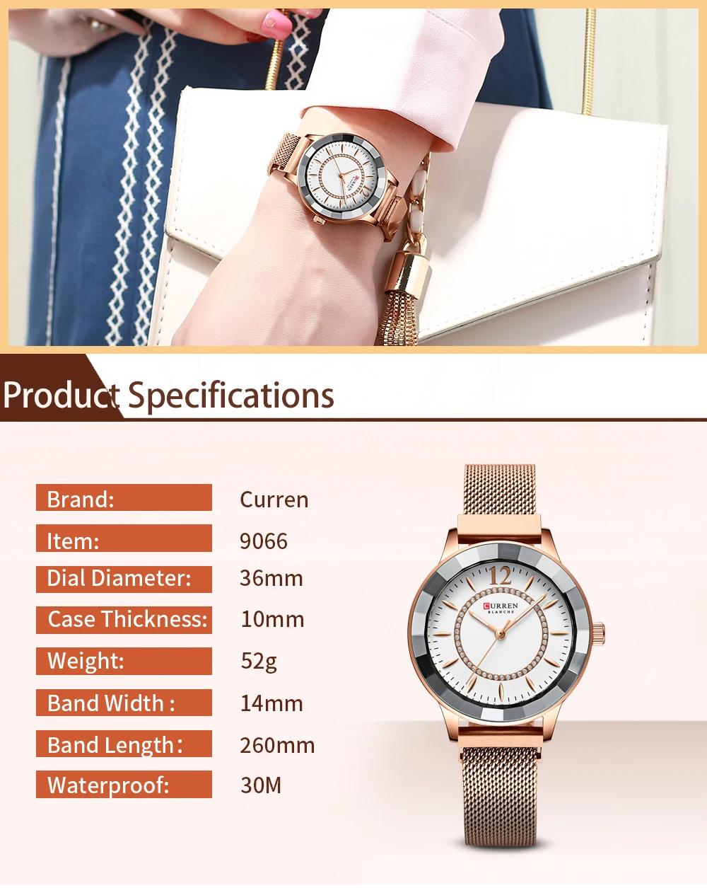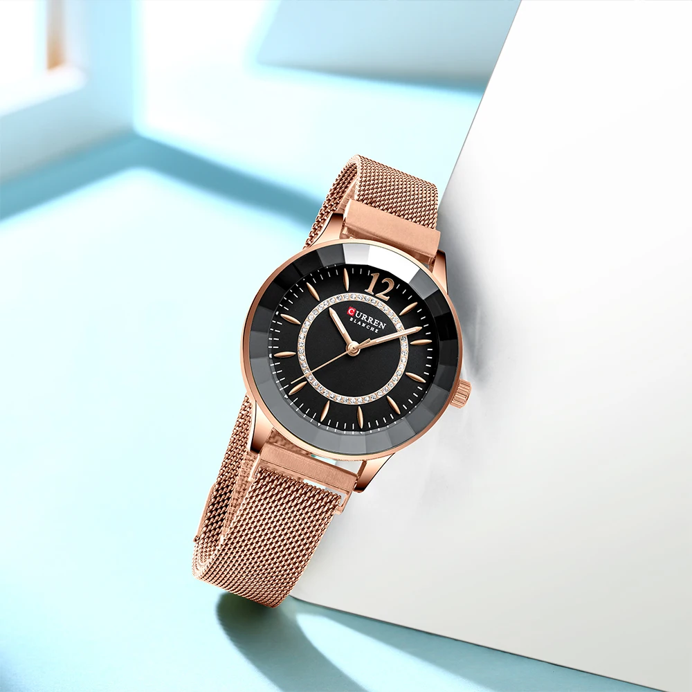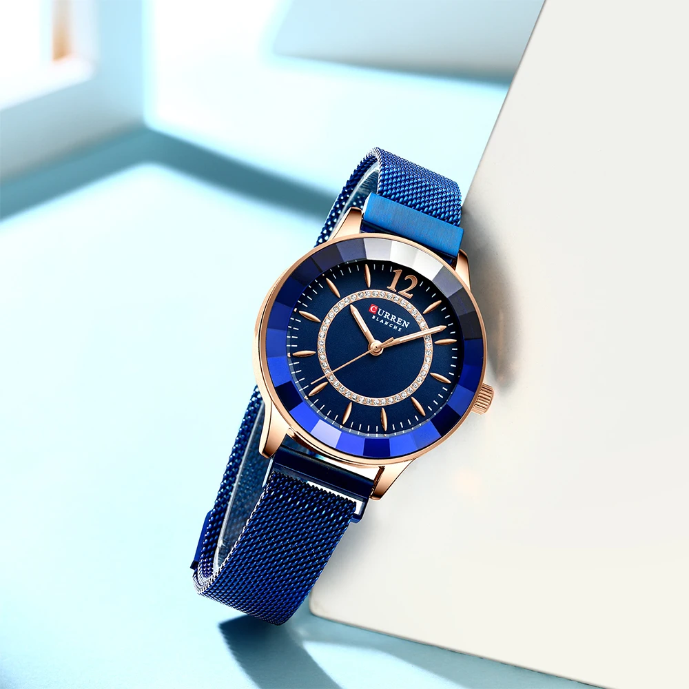 Curren очаровательные женские кварцевые часы для женщин стильные Стразы Часы с серебряной сеткой relogio feminino 2019