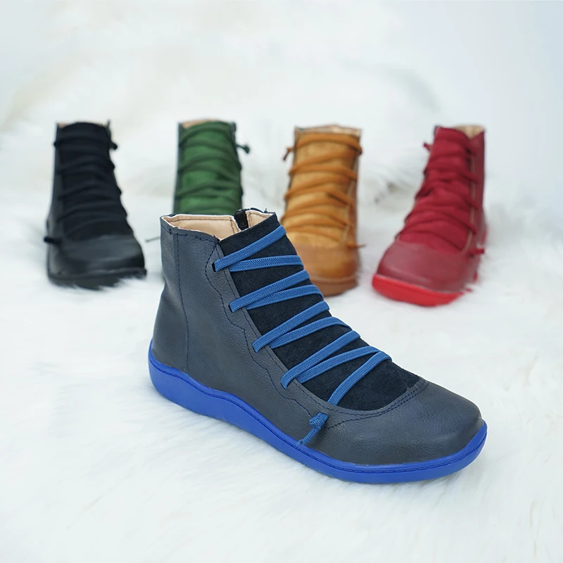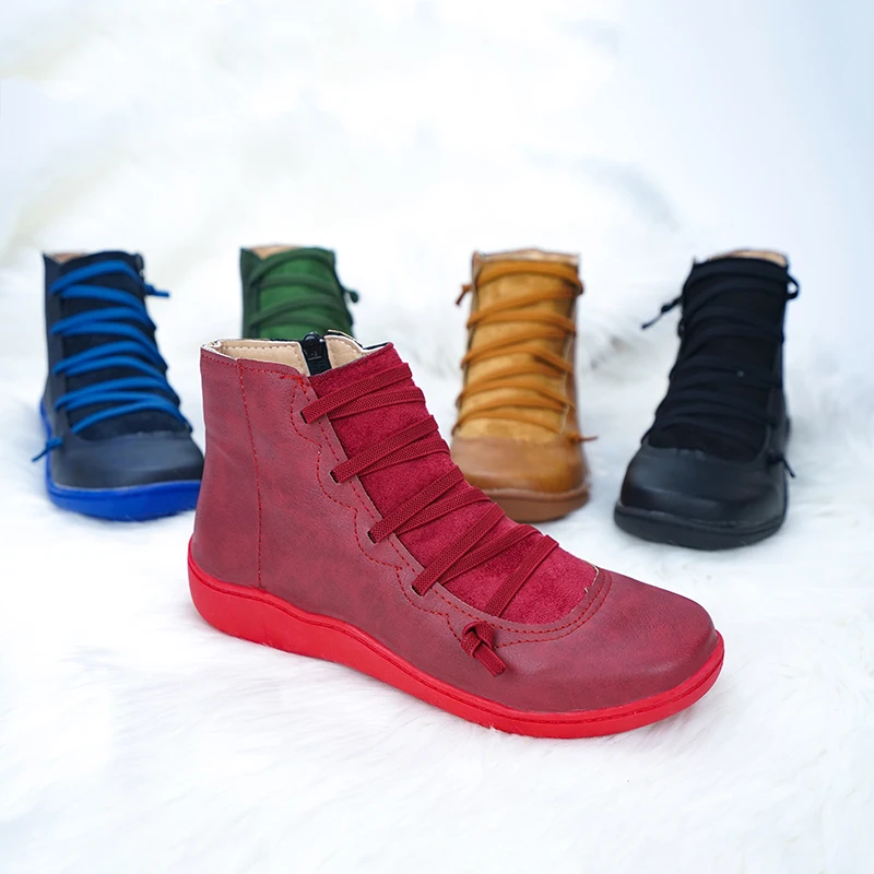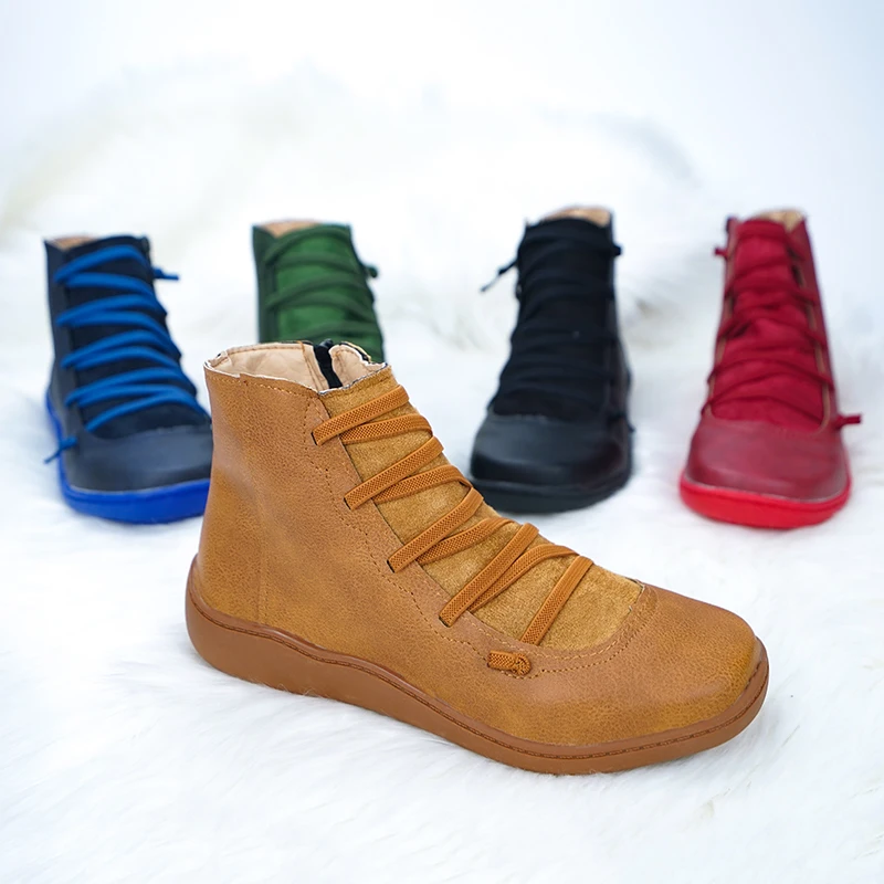 Женские ботильоны на шнуровке, Осенние винтажные удобные ботинки на плоской подошве, короткие ботинки на молнии, 2020