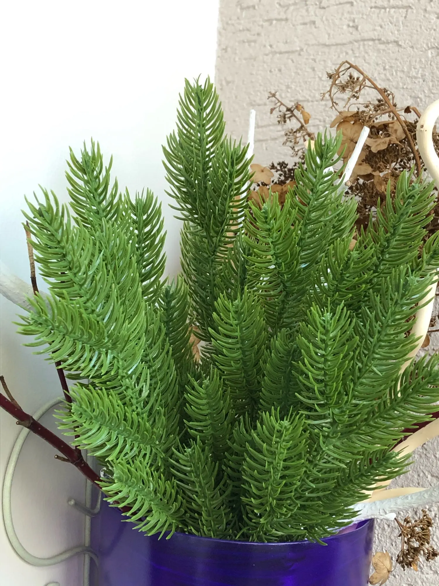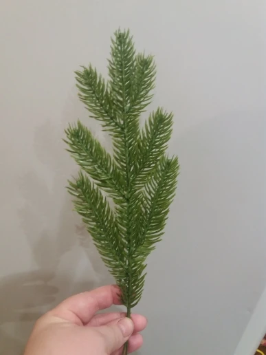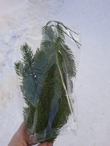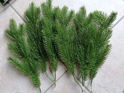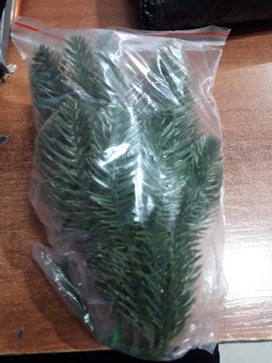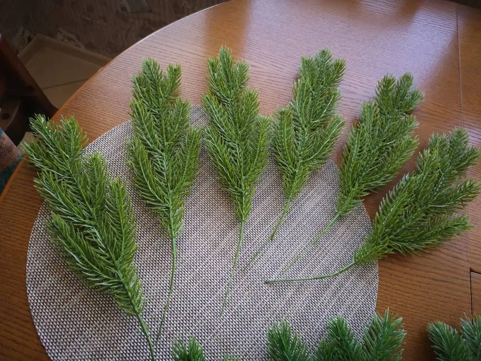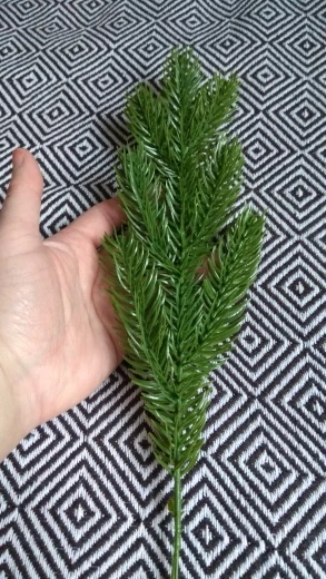 Нормальные веточки, вполне похожи на еловые, жаль шли долго (полтора месяца до Москвы), пришли 28 декабря, не получилось использовать их в композициях, будут ждать до следующего нового года. Есть небольшой химический запах, думаю выветриться. Рекомендую