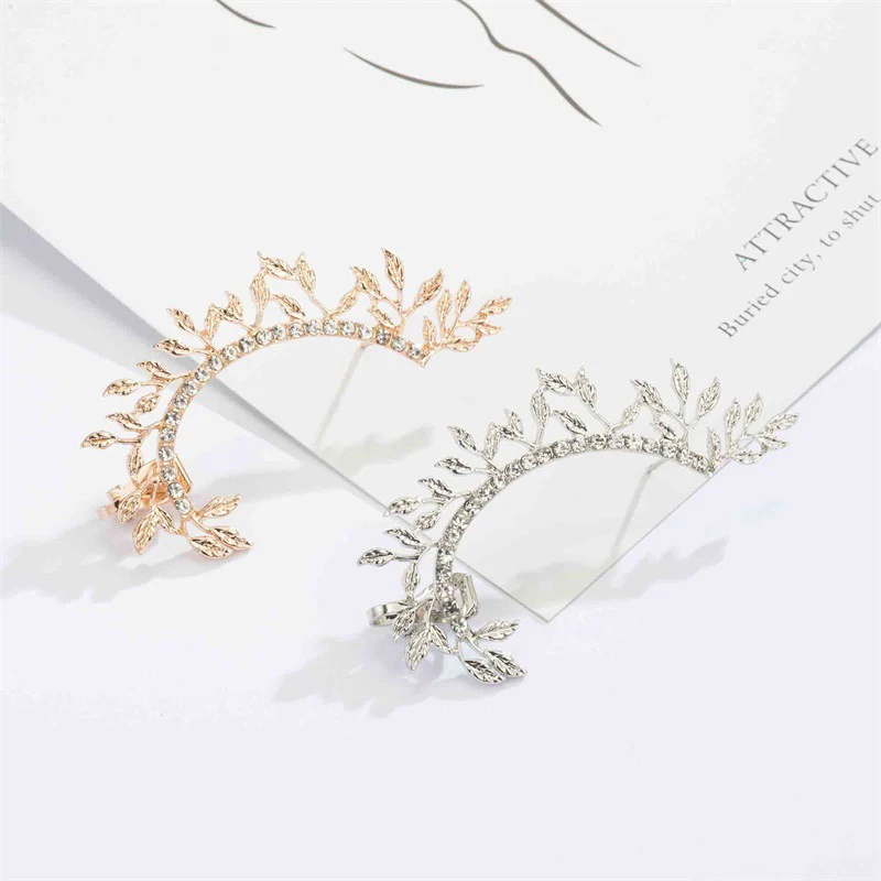 Модная новинка 2019, элегантные винтажный в стиле панк готика Стразы с кристаллами, манжеты для ушей, серьги-гвоздики клипсы