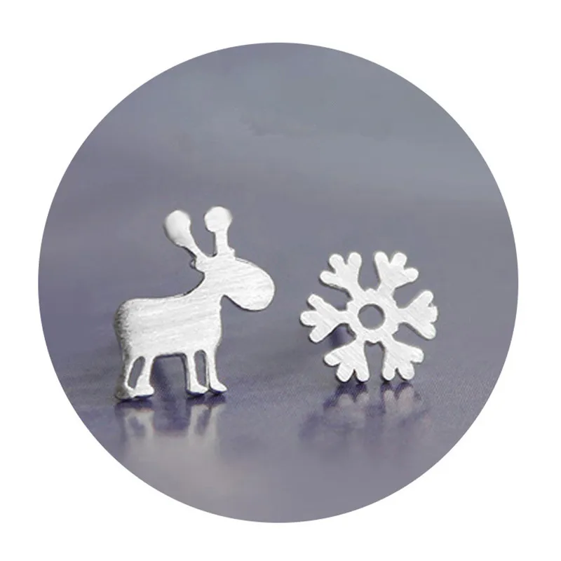 Модные серьги из стерлингового серебра 925 пробы, рождественские серьги в виде лося и снежинки, популярный подарок для девочек, серебряные серьги для женщин, ювелирные изделия