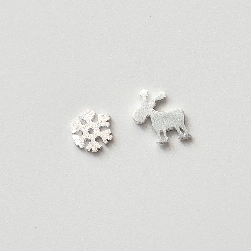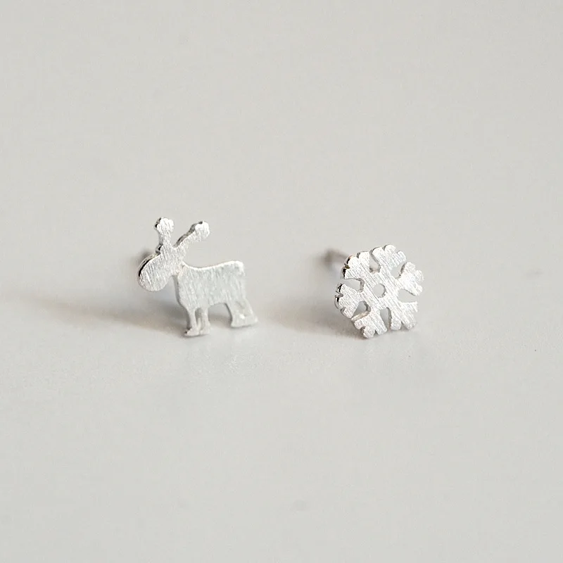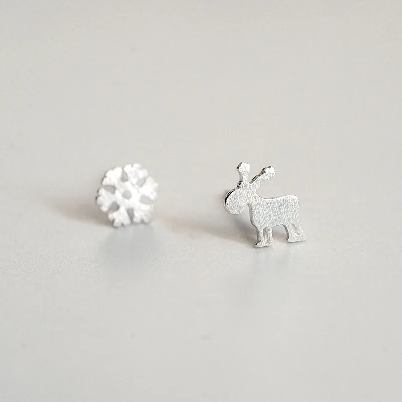 Серьги женские из серебра 925 пробы, с рождественским лосем, снежинкой