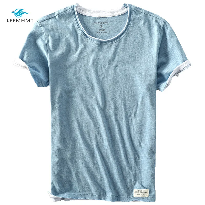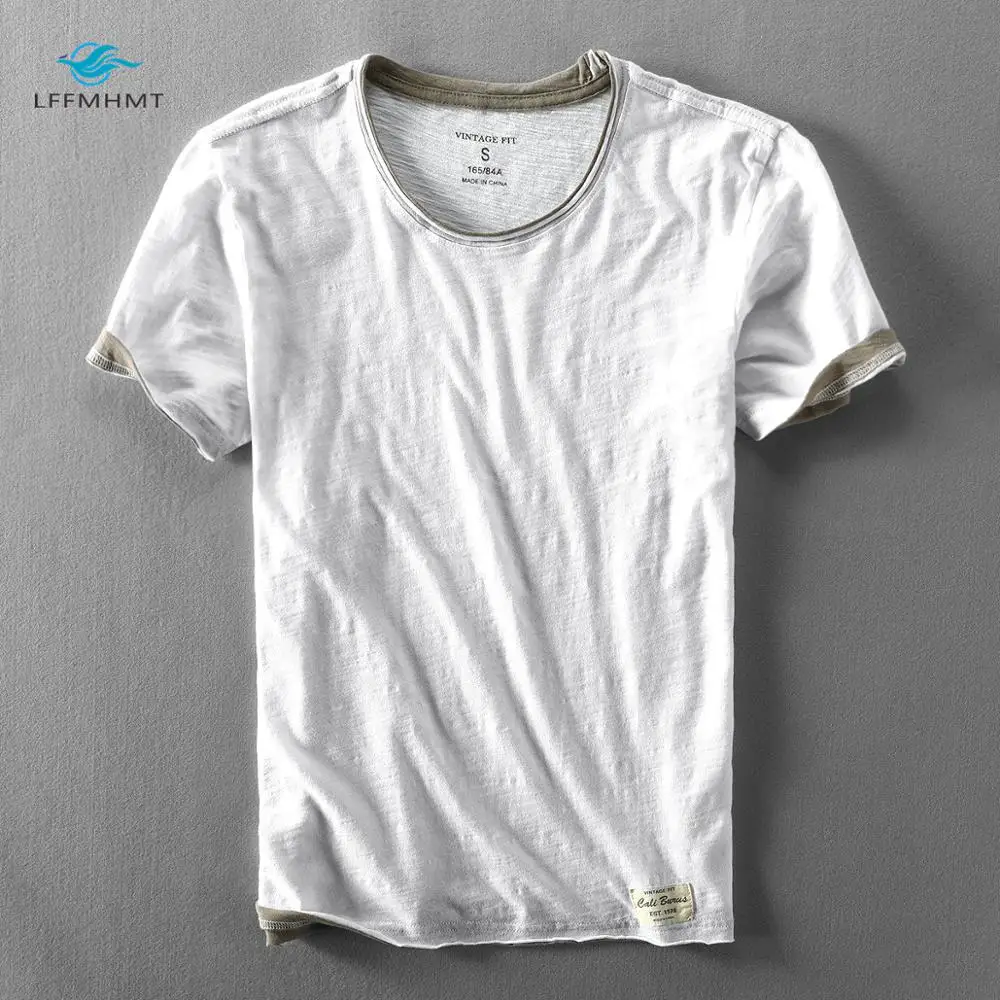 Футболка мужская с коротким рукавом, модная брендовая тенниска из бамбукового хлопка в японском стиле, Повседневная простая тонкая майка, однотонная белая, на лето