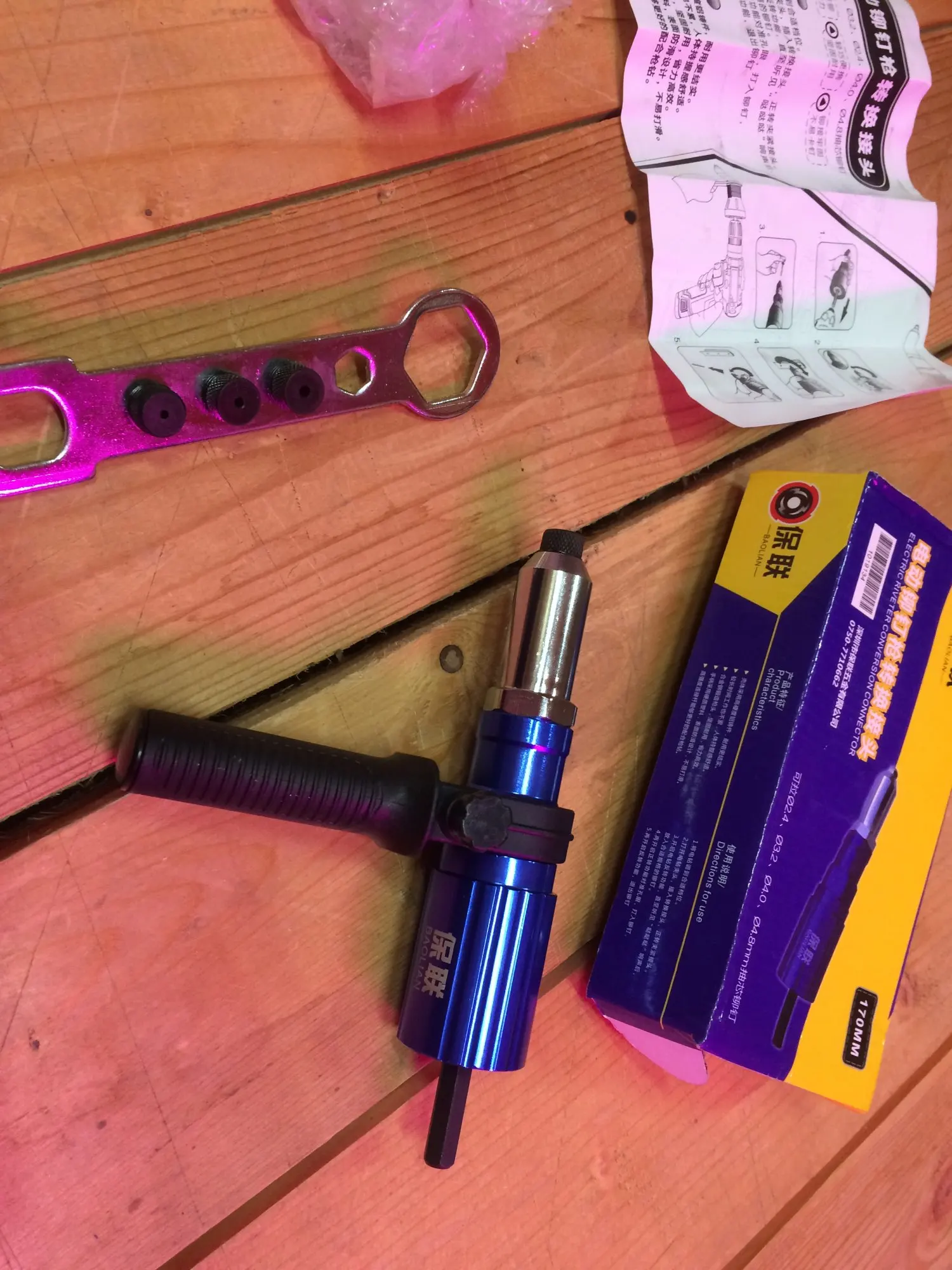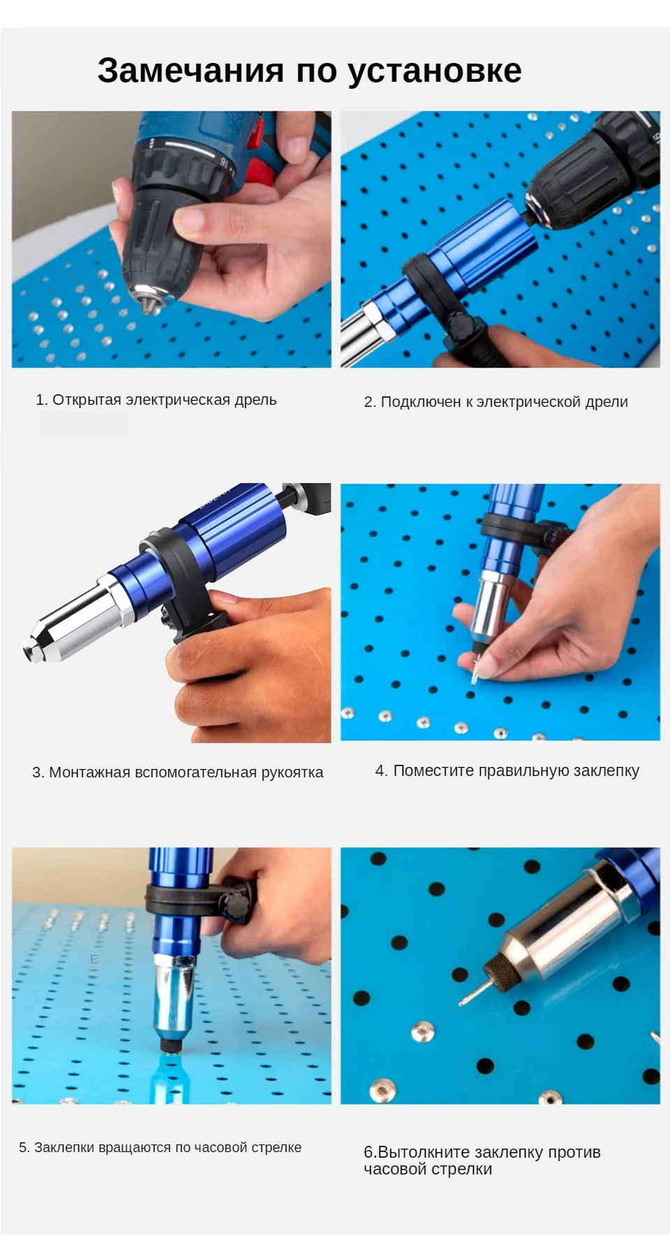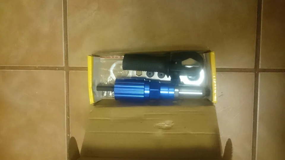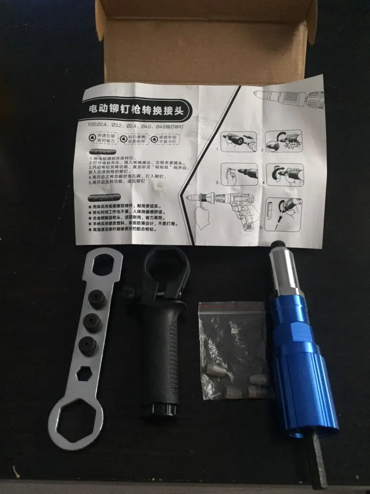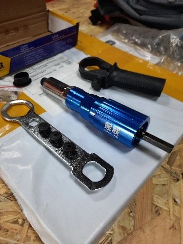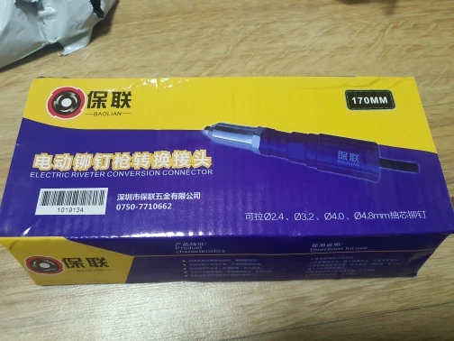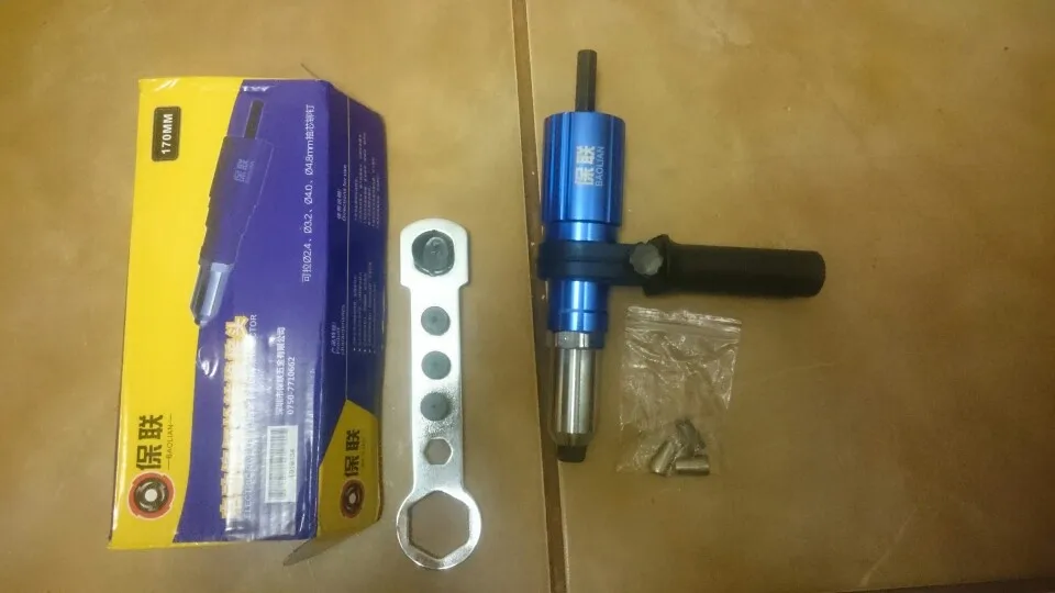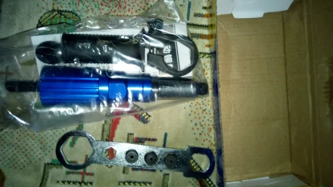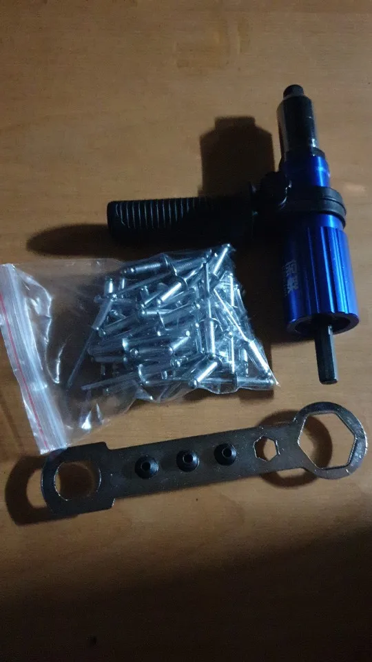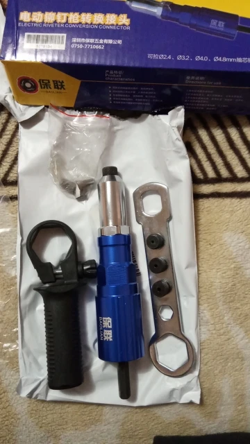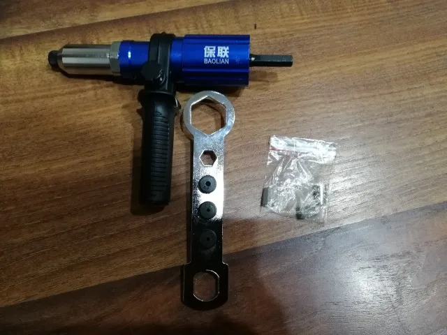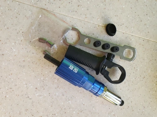 Пришло очень быстро, упаковано хорошо. Агрегат удобный. Рекомендация: как можно крепче держите рукоятку ШУРУПОВЕРТА. При больших заклепках руку просто выворачивает.