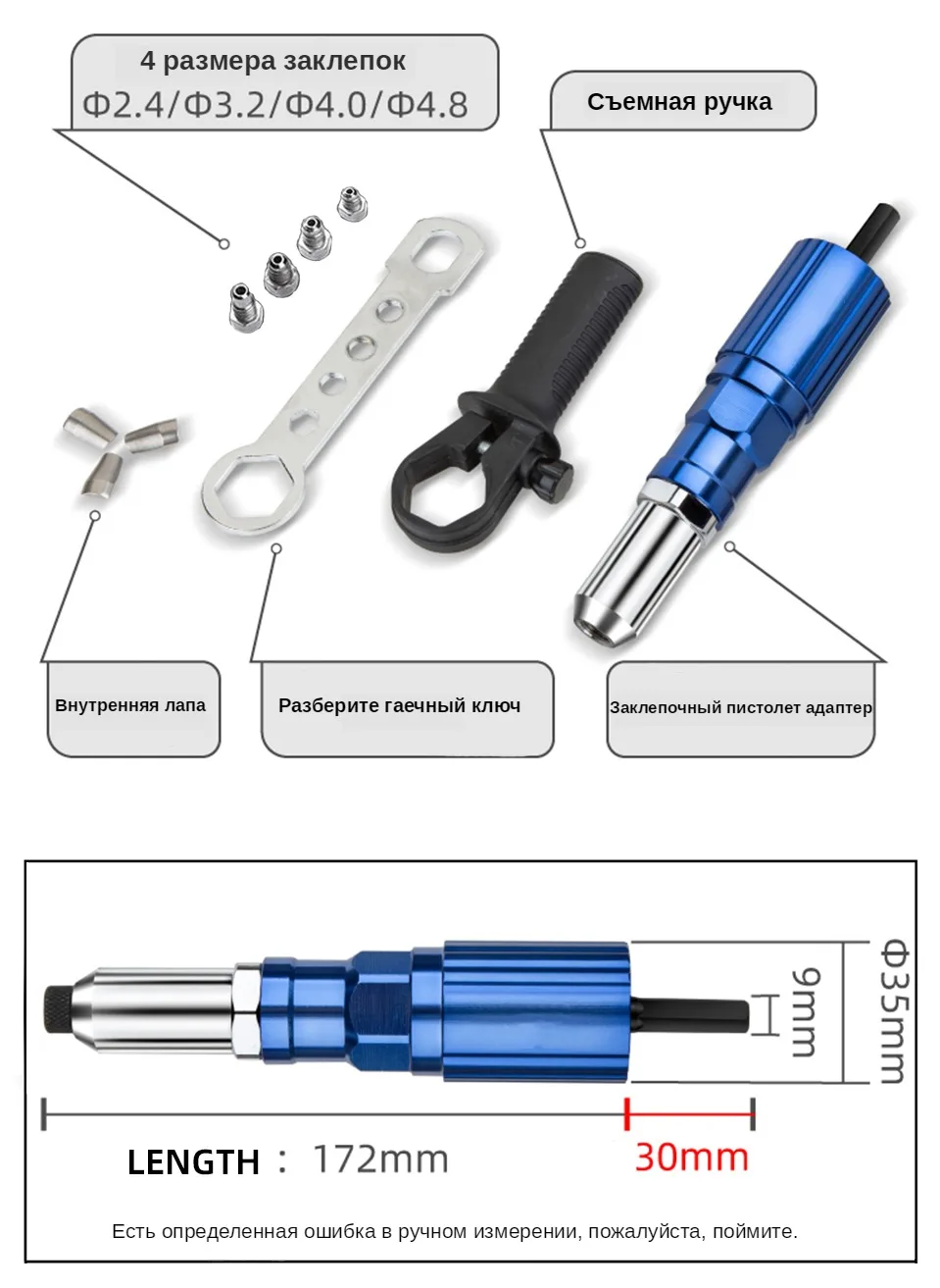 Электрический пистолет с заклепками 2,4 мм-4,8 мм с заклепками, адаптер для дрели, беспроводной инструмент для заклепок, вставной инструмент для заклепок