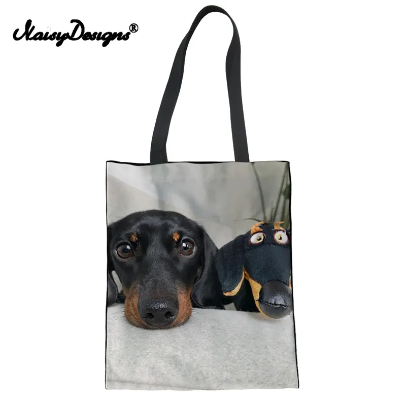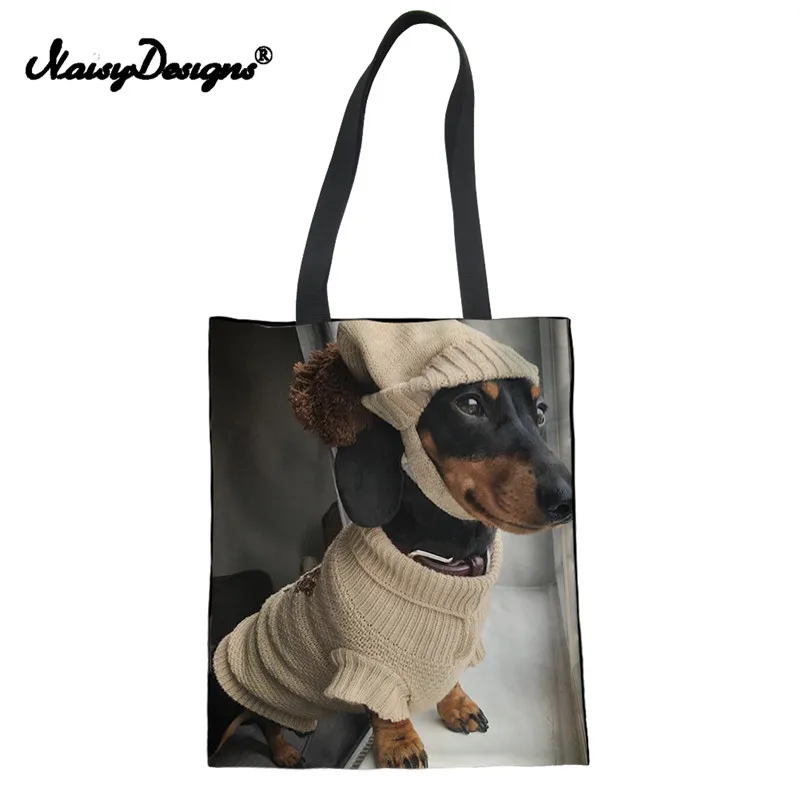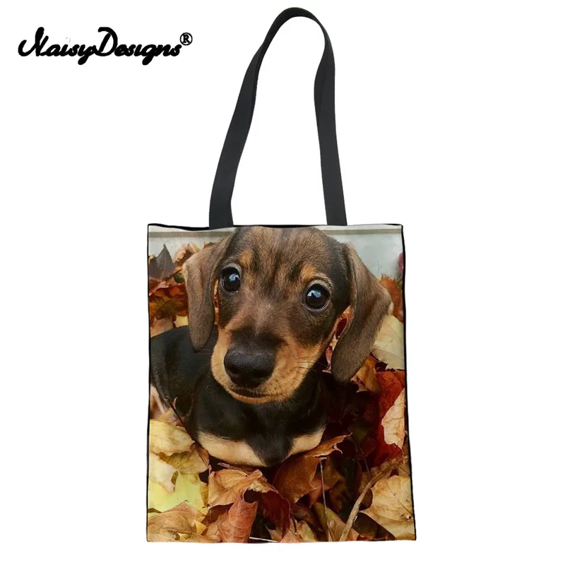 Женская тканевая сумка-тоут, многоразовый тканевый принт "Такса", милая льняная рециркулирующая пляжная сумка для девочек