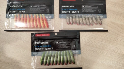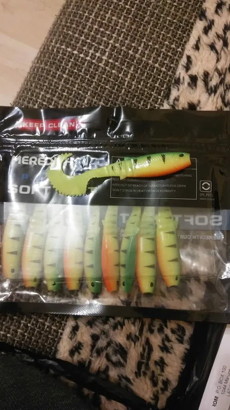 Приманки Meredith очень популярны в немецком рыболовном стиле, которые можно использовать в мягких приманках (Не удивляйтесь, потому что Да также в Азии). Упаковка несколько проще, но какая разница? Силикон устойчив, тем не менее, хорошо работает, и он не воняет после пластмассы. Доставка прошла через две недели из Китая в Германию!