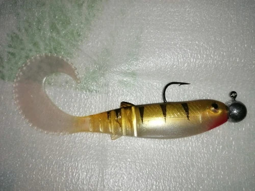 Хорошо сделано, гораздо лучше, чем маленькие лопасти хвоста сверкающие, которые не очень толстые. Посмотрите, что происходит в воде с помощью jighead.