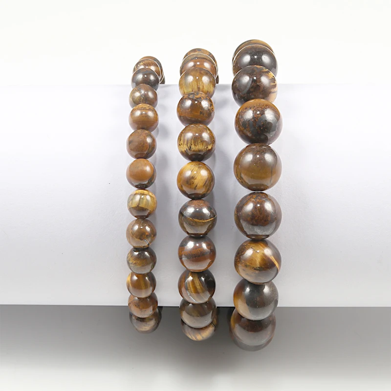 Изящный браслет из натурального камня, бусины 6810 мм, тигровый глаз из вулканической лавы, эластичный браслет из бусин для мужчин и женщин, ювелирное изделие